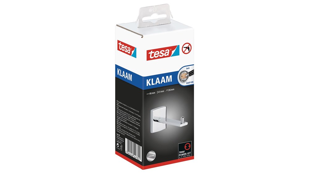 Contacteer onsHoewel een reserverolhouder niet absoluut noodzakelijk is, biedt het zeker extra veiligheid. Daarnaast ziet de tesa® Klaam reserverolhouder er prachtig uit, met de hoogglans verchroomde afwerking op de metalen behuizing. Hij kan worden geplaatst waar je maar wilt omdat het een zelfklevende oplossing gebruikt voor de montage. Boren is niet nodig zodat muren en tegels intact blijven. De lijm droogt in 12 uur. Je kunt de houder verwijderen zonder lijmresten. Hij kan net zo gemakkelijk elders opgehangen worden met adapter BK20. tesa.Power.Kit Glue: Let op! Bij gebruik kunnen gevaarlijke inhaleerbare stofdeeltjes worden gevormd. Stof niet inademen.