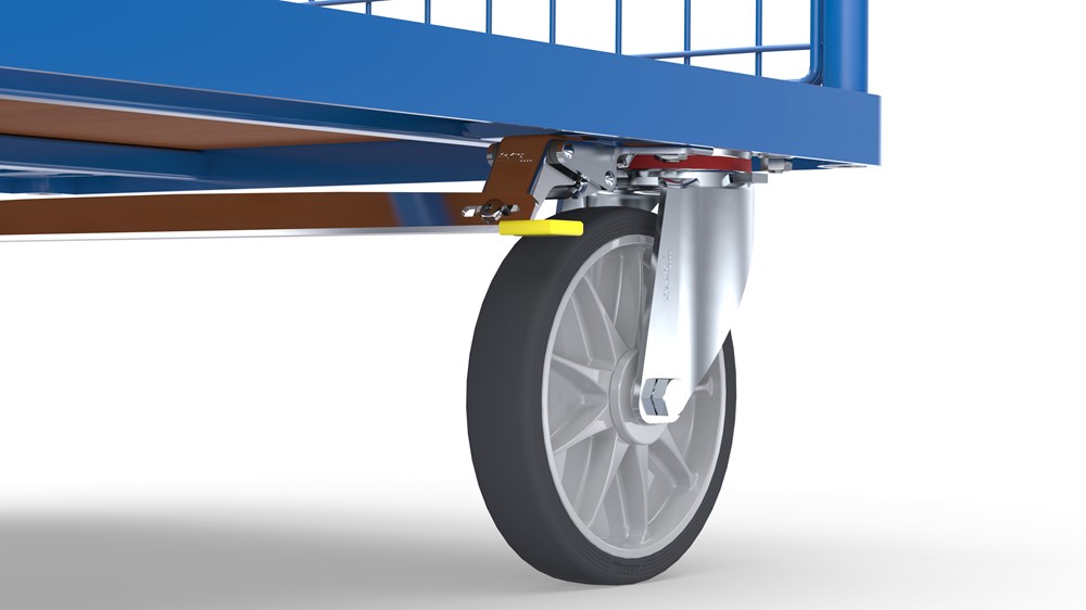 Contacteer onsFIXSTOP is de bijzonder comfortabele richtingvergrendeling van fetra. In plaats van de standaard 2 bokwielen, 2 synchroon vergrendelbare zwenkwielen. De zwenkbeweging van beide zwenkwielen laat zich door de bediening van het centrale pedaal aan beide lange zijden comfortabel in een raster 4 x 90° vergrendelen. Hierdoor verkrijgt de gebruiker met slechts één voetbeweging de keuze tussen de wend-baarbeid met 4 zwenkwielen en de spoorstabiliteit van een wagen met 2 zwenk- en 2 bokwielen. Te bedienen vanuit elke wielpositie.Meerprijs per set voor wagens met TPE banden vanaf 450 mm breedte.