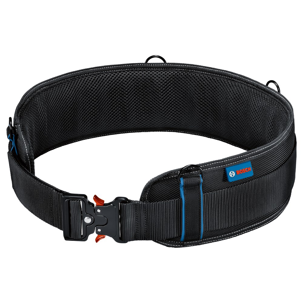 De Bosch Professional gereedschapsriem 108 zorgt voor de perfecte pasvorm en maximale mobiliteit bij het naar de bouwplaats dragen van gereedschap. Zeer ergonomische pasvorm door de geïntegreerde gewatteerde riemvoering kenmerkt de gereedschapsriem 108. D-ringen aan de Bosch Professional gereedschapsriem maken het gebruik van schouderriemen mogelijk. Door het vernuftige ontwerp kunnen alle ProClick Holders en riemzakken gemakkelijk worden aangebracht en weggehaald.