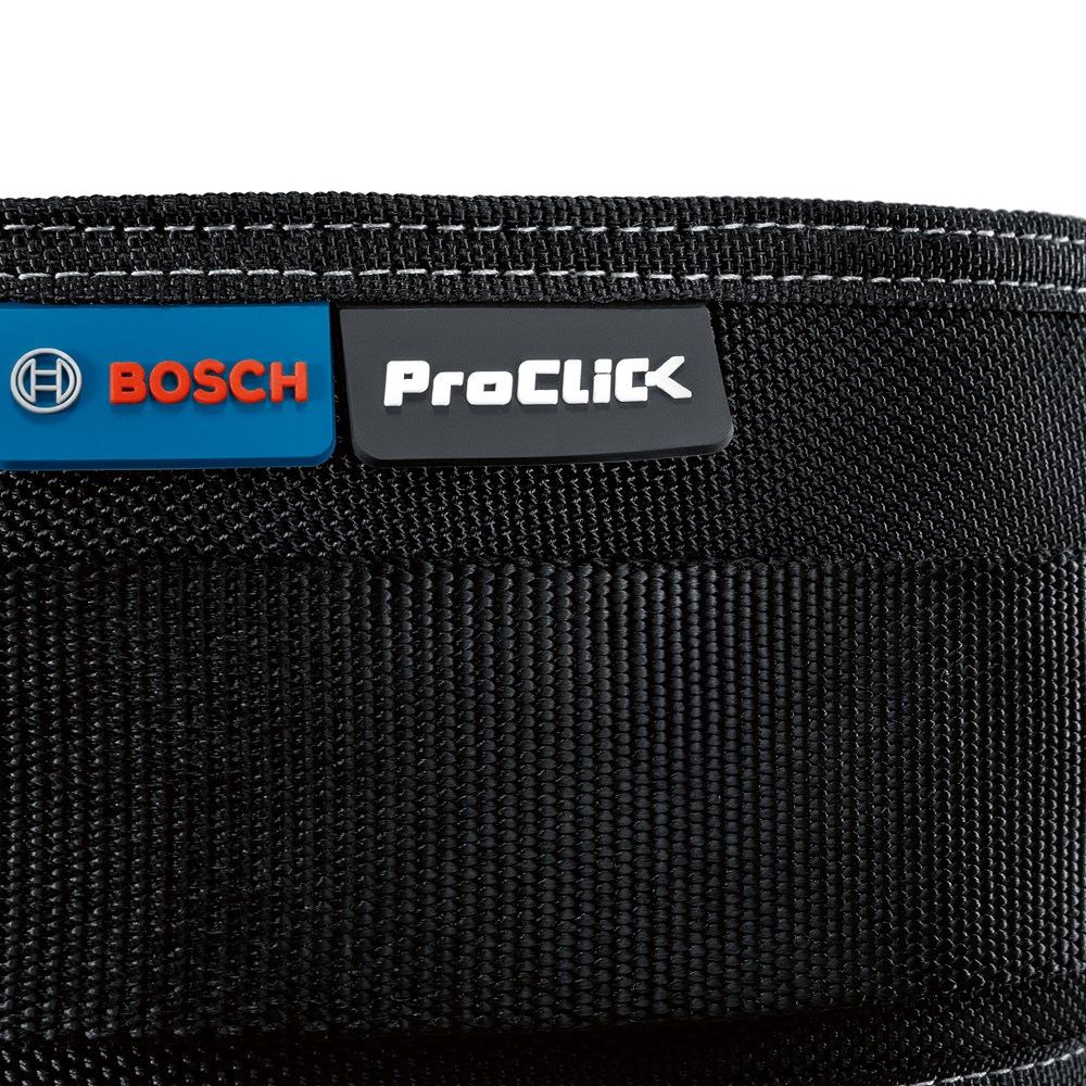 De ProClick gereedschapsriem 108 is de ergonomische en comfortabele manier om gereedschap naar de bouwplaats te dragen. Het lichte 1000D polyester en gewatteerde riemontwerp zorgen voor een comfortabelere werkervaring. Met het Bosch Professional ProClick System kunnen ProClick riemzakken gemakkelijk worden bevestigd, gewisseld en afgesteld.