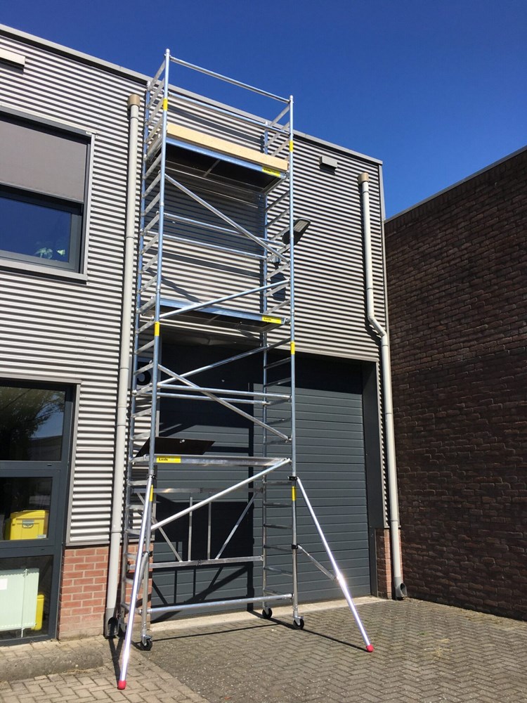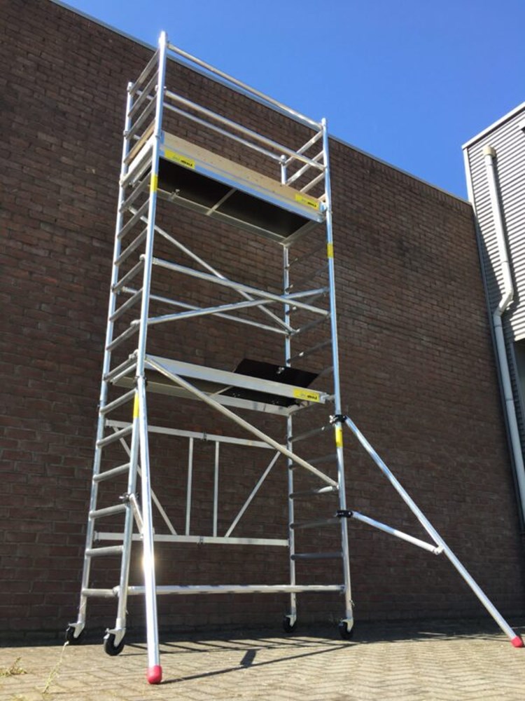 Contacteer onsProfessionele vouwsteiger uitgevoerd met 3 platforms met luik, 2x opbouw 2 m, leuningset en 2 telescopische stabilisatoren. EN 1004 / EN 1298 *Bij vrijstaand gebruik 4 stabilisatoren verplicht Stahoogte 5,7 m Wekhoogte 7,7 m
