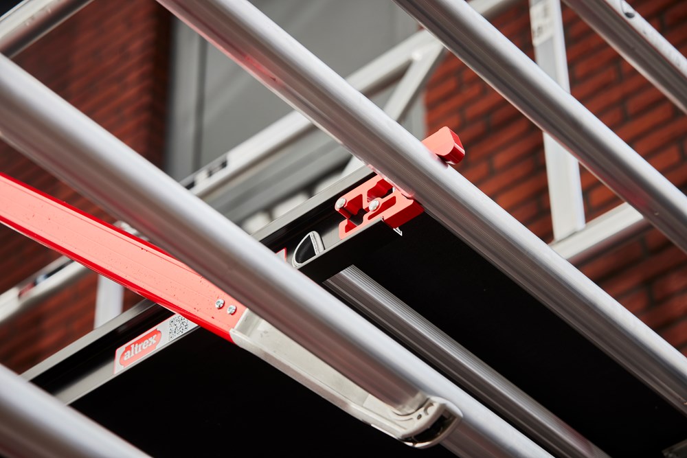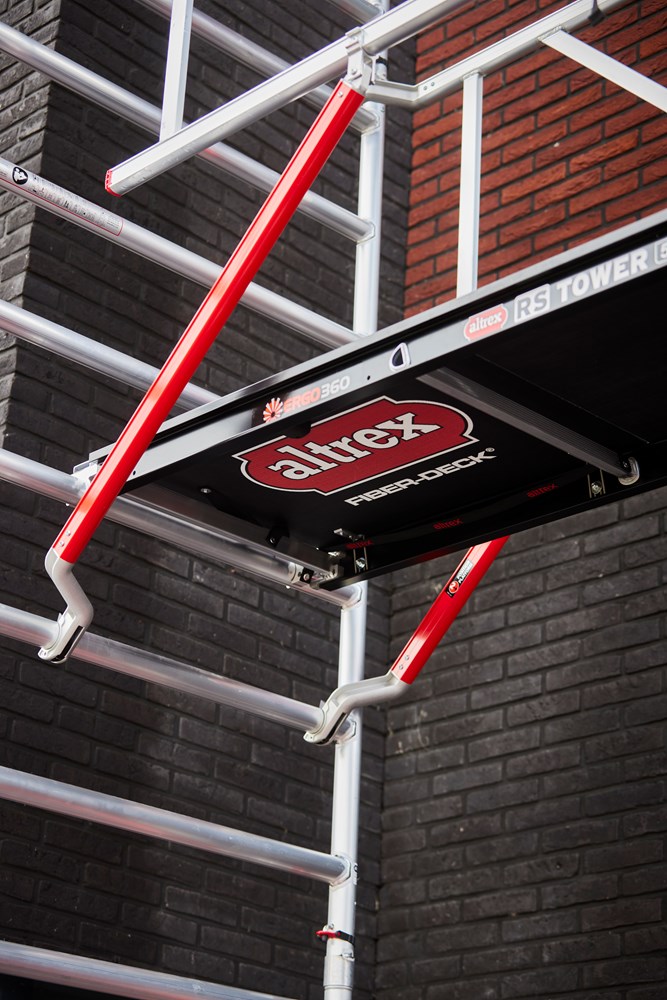 Je creëert je eigen maatwerk met de RS TOWER 51. En dat tot wel 10,2 meter hoogte binnen en buiten. Met smalle frames van 0,75 of 0,90 meter en een belasting tot 250 kg per platform is deze steiger geschikt om in smalle ruimtes te plaatsen. Het platform is verkrijgbaar in de lengte: 1.85, 2.45 of 3.05 meter. Rondom gelaste antislip sporten en vaste borgpennen maken het frame bovendien ijzersterk en 100% betrouwbaar. Met de Safe-Quick® uitvoering heb je altijd rondom bescherming en sta je altijd veilig.