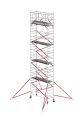 Rolsteiger smal, voor smalle ruimtesSmalle rolsteigers hebben frames van 0,75 en 0,90 meter. Dat betekent dat er één platform per niveau kan liggen. Zo zijn smalle steigers uitermate geschikt als je weinig ruimte hebt.
