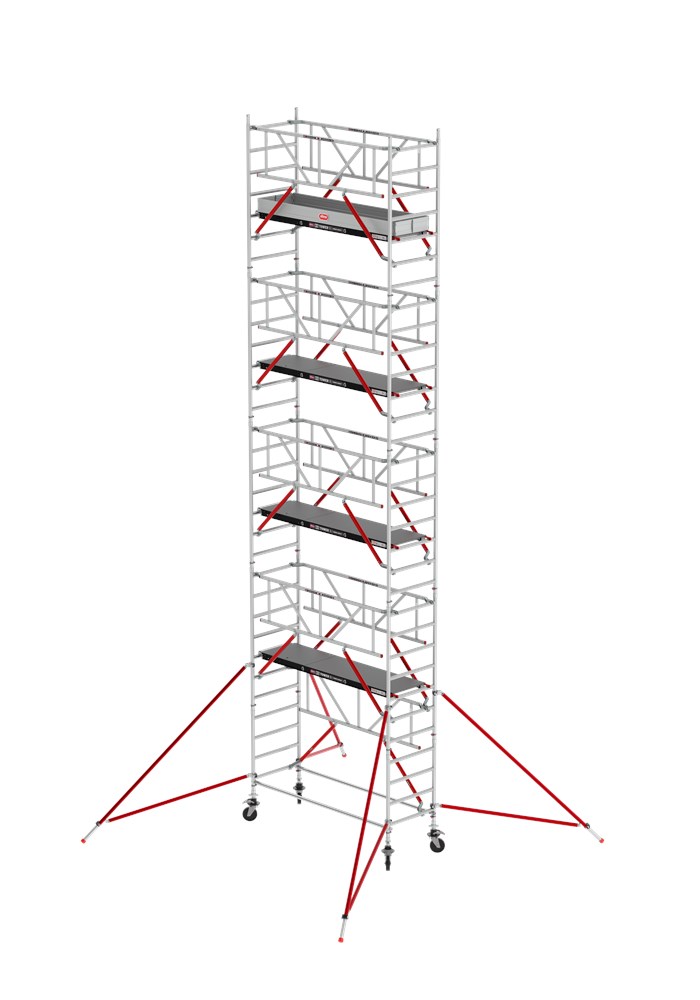 Je creëert je eigen maatwerk met de RS TOWER 51. En dat tot wel 10,2 meter hoogte binnen en buiten. Met smalle frames van 0,75 en 0,90 meter en een belasting tot 250 kg per platform is deze steiger geschikt om in smalle ruimtes te plaatsen. Het platform is verkrijgbaar in de lengte: 1.85, 2.45 of 3.05 meter. Rondom gelaste antislip sporten en vaste borgpennen maken het frame bovendien ijzersterk en 100% betrouwbaar.