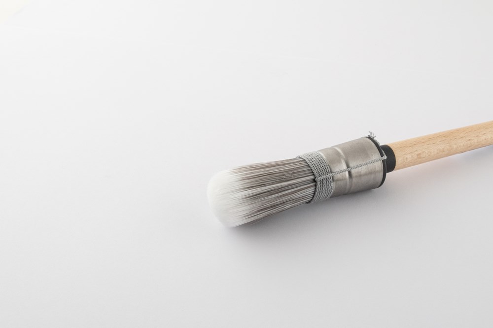Contacteer onsVerfborstel rond • Grijze Polyethyleen vezels • houten handvat, vernist • opgebonden met touw Toepassingen: Watergedragen verven en alle andere verven Allround