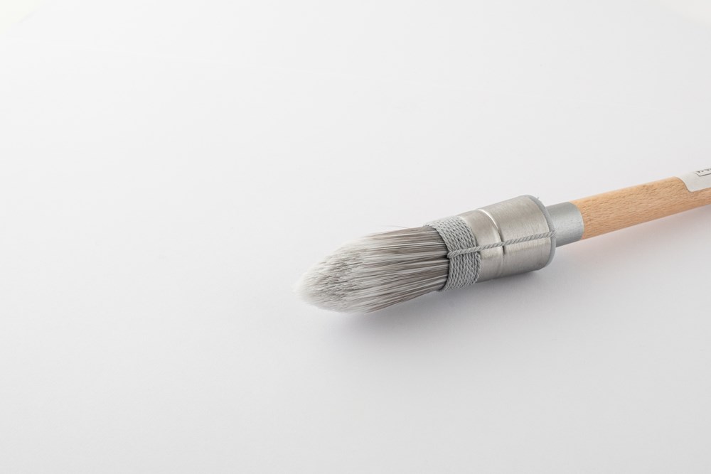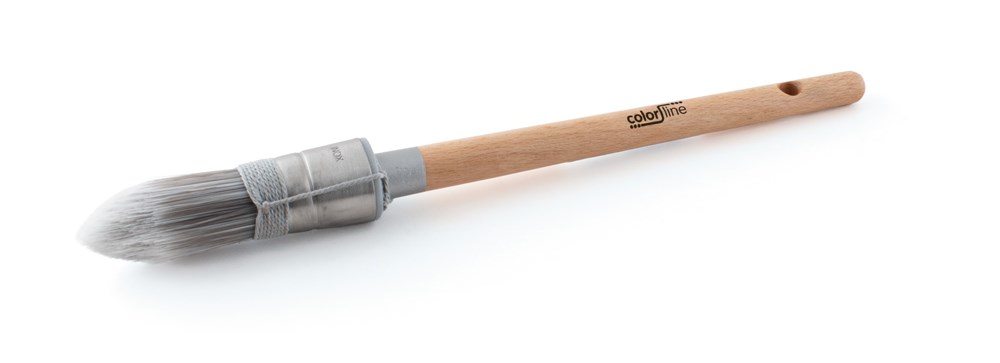 Contacteer onsVerfborstel rond • Grijze Polyethyleen vezels • houten handvat, vernist • opgebonden met touw Toepassingen: Watergedragen verven en alle andere verven Allround