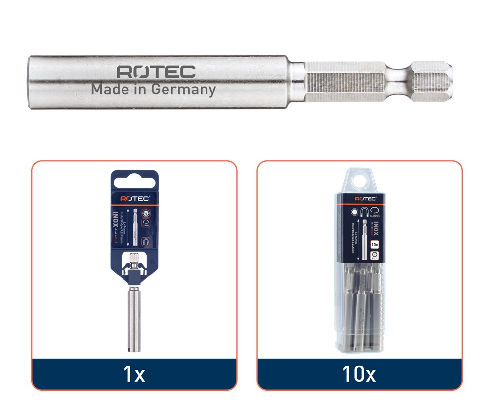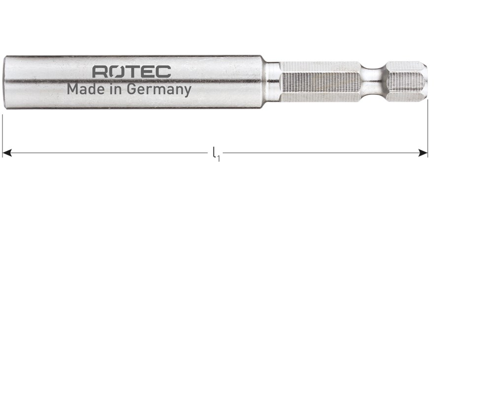Magn. RVS Bithouder uit een stuk gedraaid E 6,3 x 74mm, met C-ring.