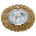 De schijfborstel biedt een ultrafijne afwerking van het oppervlak. De borstel is voorzien van vermessingd, gegolfde draad voor lichte tot middelzware reinigingswerkzaamheden op kleine oppervlakken. Het gereedschap is ideaal voor het verwijderen van aanloopkleur op lasnaden en is ook geschikt voor reinigingswerkzaamheden op kleinere oppervlakken van metaal of non-ferrometalen, randen of groeven. Deze borstel is ook geschikt voor het ontroesten, opruwen, matteren, structureren en ontlakken van metaal en hout.
