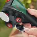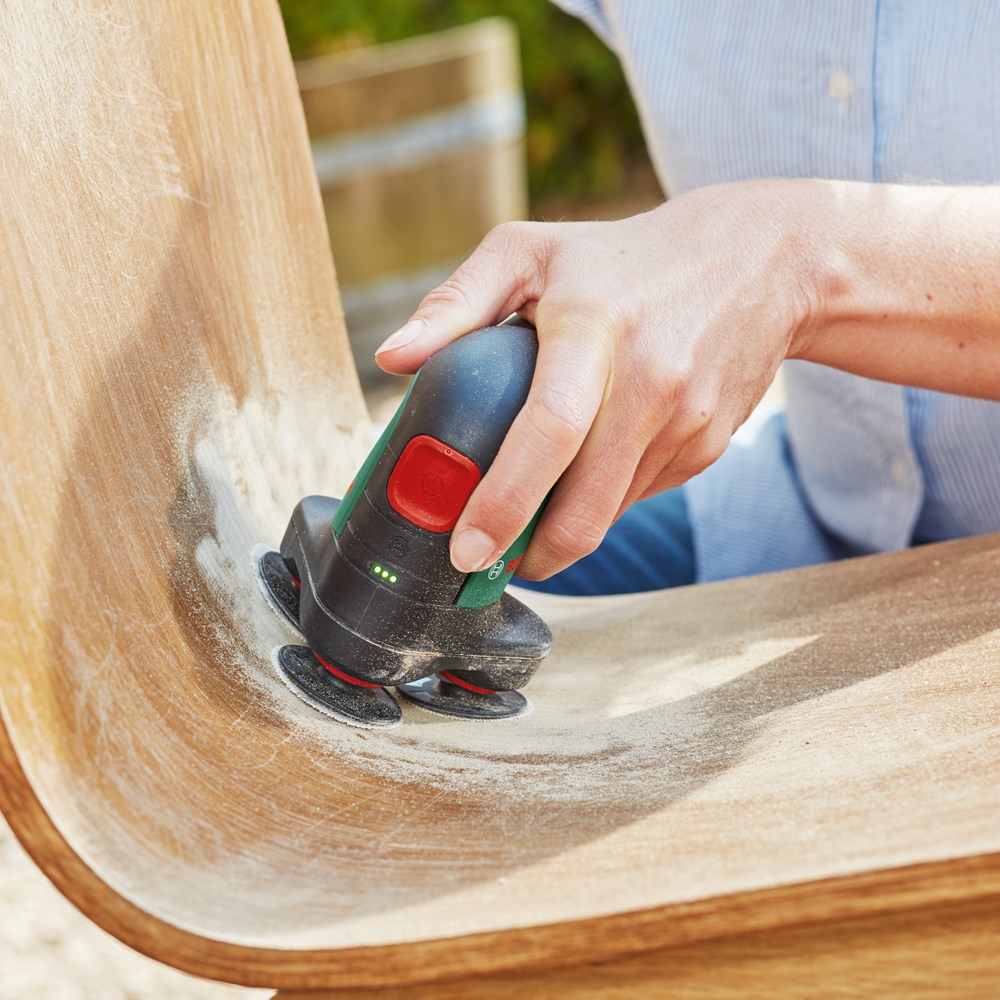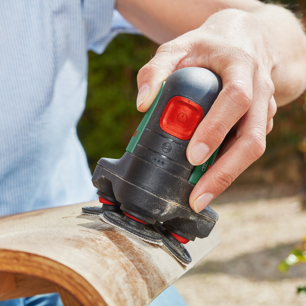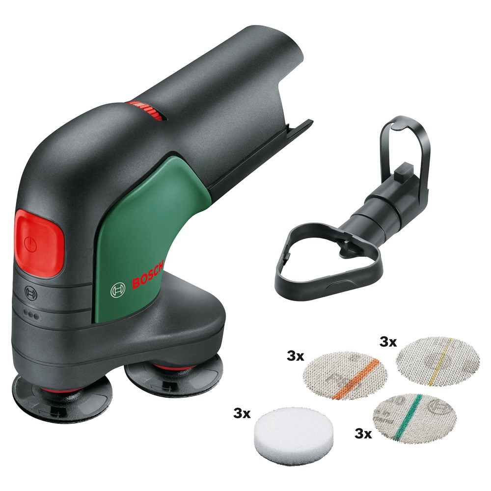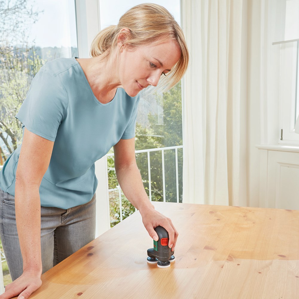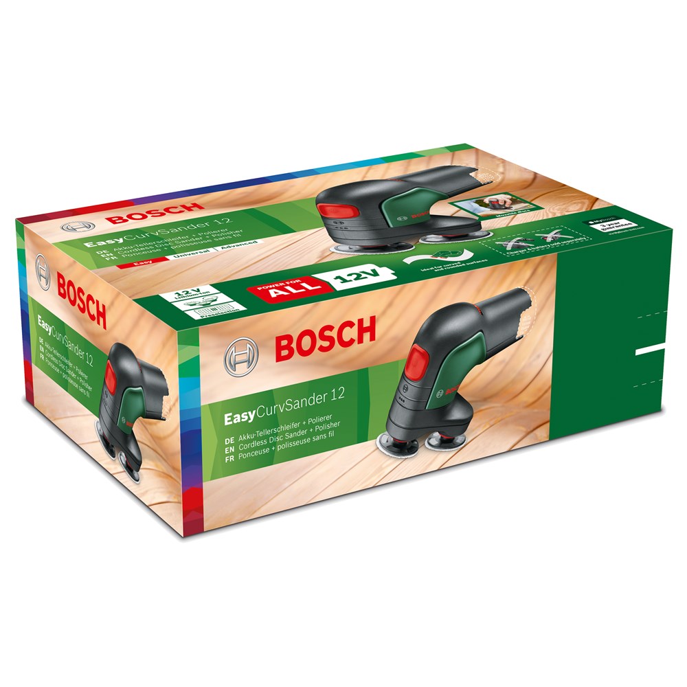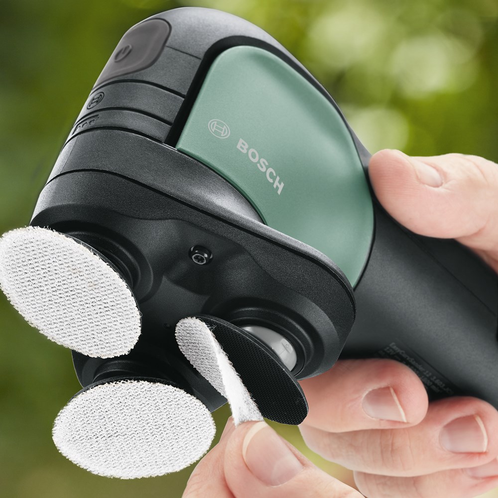 Ideaal voor het snoerloos schuren en polijsten van kleinere en middelgrote platte en gebogen oppervlakken Hier is de EasyCurvSander 12, de allereerste accuschijfschuurmachine en -polijstmachine. Ontdek soepel werken met drie draaiende, beweegbare schijven voor het schuren en polijsten van platte, gebogen en ronde oppervlakken. De duurzame schuurnetten zorgen voor een hoge materiaalafname en een uitstekende oppervlaktekwaliteit bij heel veel toepassingen. Stem de werksnelheid op elk materiaal en elke klus af met de elektronische toerentalinstelling. Profiteer van weinig trillingen en weinig lawaai tijdens het werk. Een stofafzuighulpstuk helpt om de werkomgeving schoner te houden. Voor het schuren en polijsten van hardhout, zacht hout, geverniste oppervlakken, metaal en leer. Het gereedschap maakt deel uit van het 12V POWER FOR ALL-systeem. Eén accu kan worden gebruikt voor alle 12V POWER FOR ALL-gereedschappen.