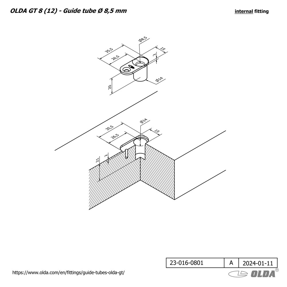 Contacteer onsOlda Artikelnummer: 0823.016.0801 SCHOOTGELEIDER / TYPE GT 812 / T.B.V. SCHOOT 8 MM / SMALLE VOORPLAAT