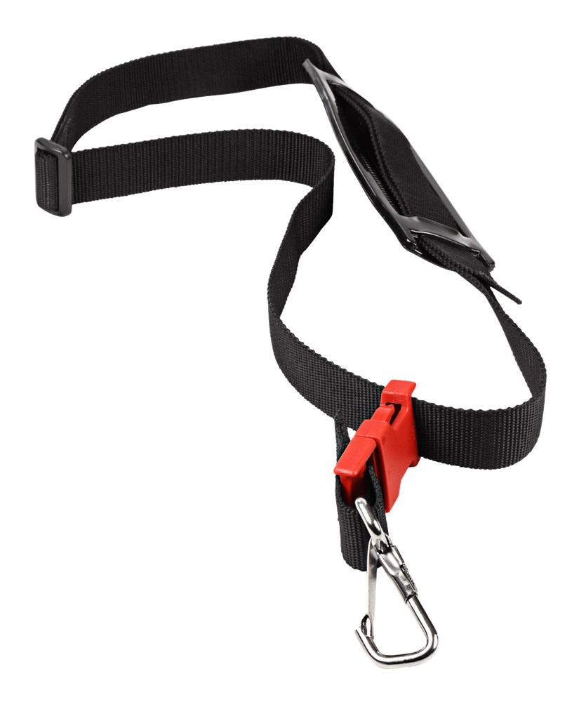 Contacteer onsDraagriem voor trimmer, bosmaaier, combisysteem en stokheggenschaar met één bevestigingsoog. De draagriem is verstelbaar, voorzien van kunststof schouderpad, snelkoppeling om de machine snel los te koppelen en karabijnhaak voor de bevestiging.