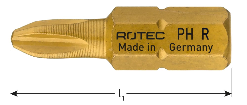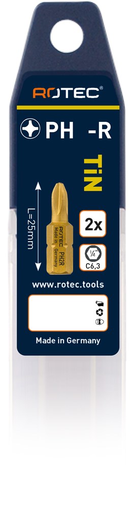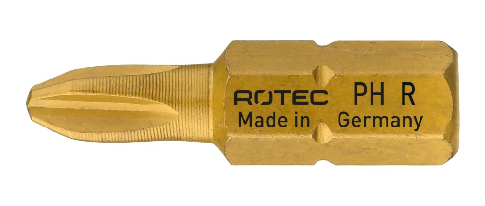 Schroefbit met C6.3-bitaansluiting, profiel PH (Phillips), met gereduceerde punt, met TiN-coating.