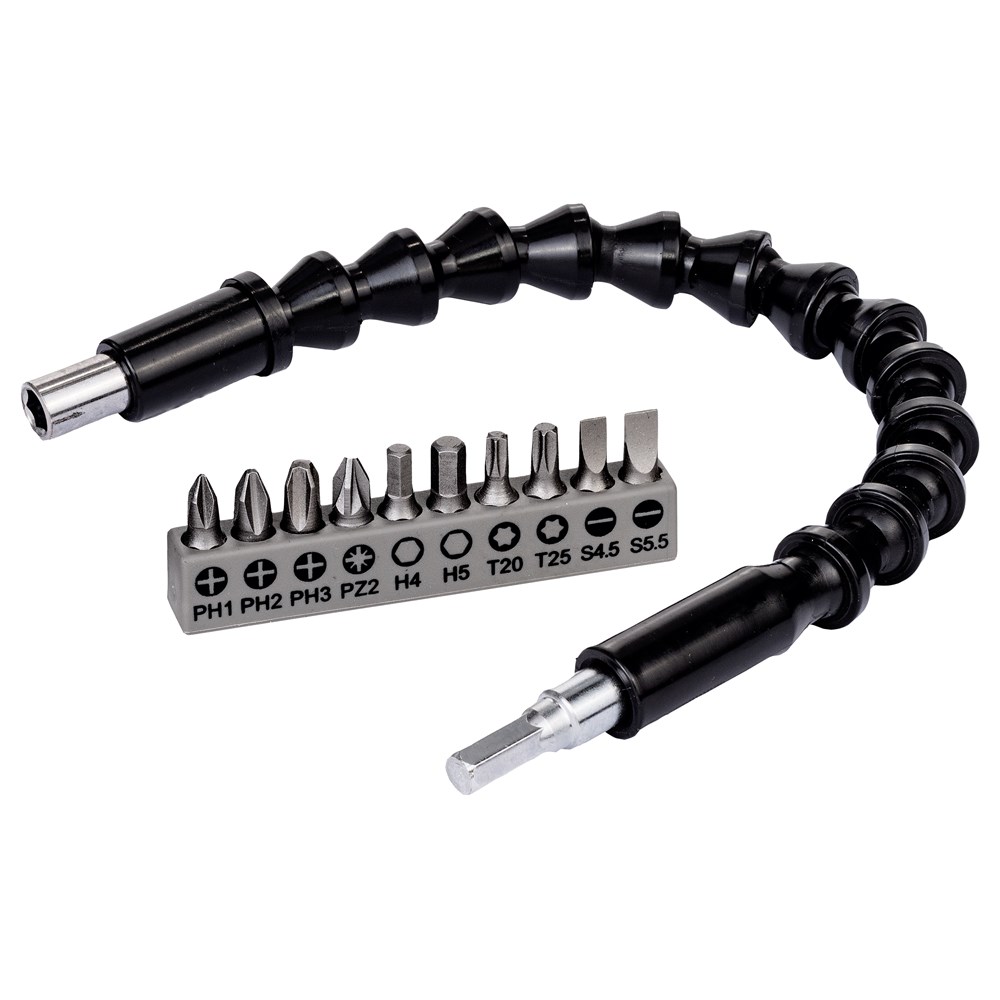 11-delige schroefbitset met flexibel kunststof verlengstuk (300 mm)
