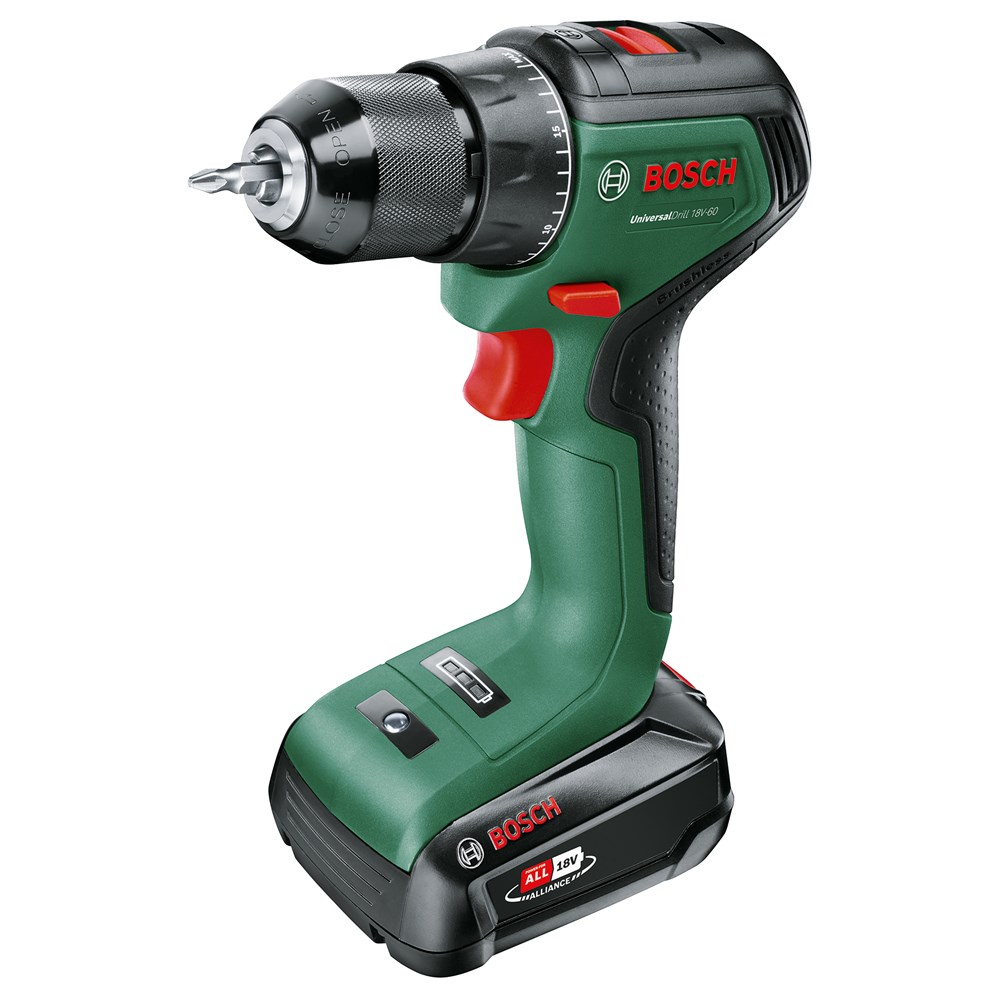 Krachtig en duurzamer voor optimale boor- en schroefprestaties Uithoudingsvermogen en superieure prestaties in één – de UniversalDrill 18V-60 zorgt voor vermogen, precisie en gemak voor het boren in hout, metaal en kunststof en garandeert tevens moeiteloos schroeven. Samen met de veelzijdigheid, het vermogen van 20 draaimomentstanden en een aandrijving met twee standen garandeert de borstelloze motortechnologie nu dat deze boormachine efficiënter werkt, terwijl een langere looptijd wordt geleverd. De robuuste, hoogwaardige metalen boorhouder van 13 mm houdt bits stevig op hun plek en maakt gemakkelijk wisselen van accessoires mogelijk. Het gereedschap maakt deel uit van de POWER FOR ALL ALLIANCE. Eén accu kan een groot aantal machines/apparaten van verschillende merken laten werken.