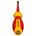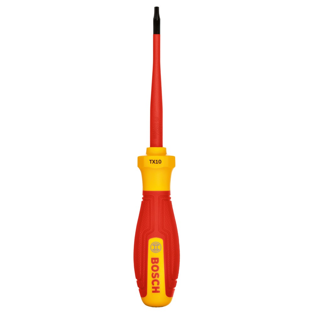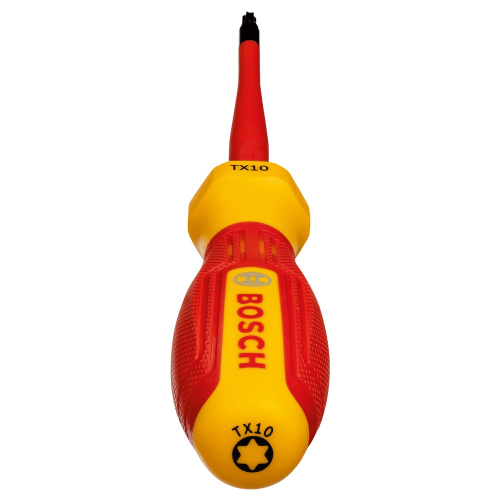Professionals hebben gereedschappen nodig die eenvoudig in gebruik zijn en die aan alle wettelijke eisen voldoen. Met de Bosch Professional schroevendraaier kunnen schroeven wordt vast- en losgedraaid, zelfs als er onverwacht contact met spanningvoerende onderdelen wordt gemaakt. Dit gestandaardiseerde gereedschap is geïsoleerd met thermoplastisch elastomeer (TPE). Het is getest tot max. 10.000 volt en VDE-gecertificeerd tot max. 1000 volt conform DIN EN/IEC 60900. Onze VDE schroevendraaier is precies en duurzaam; de slanke schacht en robuuste punt zorgen voor een nauwkeurige pasvorm. De softgrip en het superieure ergonomische ontwerp zorgen ervoor dat het gereedschap goed in de hand ligt en er comfortabel mee kan worden gewerkt. Het S2-blad van de schroevendraaier heeft een beschermende isolatielaag en de handgreep is geïsoleerd met TPE. Door VDE handgereedschappen aan ons Bosch Professional programma toe te voegen zijn alle gereedschappen in betrouwbare Bosch kwaliteit verkrijgbaar.