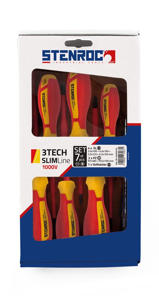Contacteer onsSTENROC Artikelnummer: PPSR 145900702 7-DELIGE SCHROEVENDRAAIERSET SLEUF + PZ - 3TECH 1000V PROLINE