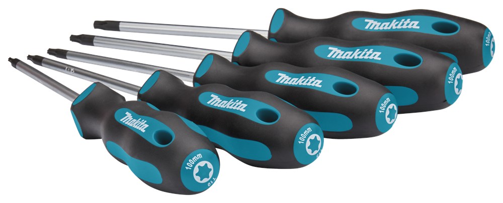 Contacteer onsDe Makita schroevendraaiers zijn voorzien van een magnetische punt en een antislip en oliebestendige handgreep. De krachtschroevendraaiers zijn voorzien van een zeskantschacht. Hierdoor kan er doormiddel van een steeksleutel extra kracht worden gezet om schroeven aan te draaien of om vastzittende schroeven te verwijderen. Tevens zijn de krachtschroevendraaiers voorzien van een slagvaste achterkant. Torx schroevendraaierset met de afmetingen T10 tot en met T30. Deze schroevendraaiers zijn voorzien van een magnetische punt en een antislip/oliebestendige handgreep.
