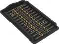 Elektrostatisch veilige 25-delige Wera Micro-schroevendraaierset. Meegeleverde schroefprofiel zeer geschikt voor mobiele telefoons, tablets en laptops/computers. Goed beveiligd tegen elektrostatische energie en daaruit voortvloeiende schade. Door het steunen van de hand op de draaikap en de sneldraaizone onder de draaikap is razendsnel in- en uitschroeven mogelijk. Tijdrovend ompakken behoort tot het verleden. Krachtzone met geïntegreerde zachte delen zorgt voor overdracht van hoge losdraai- en aanhaalmomenten. Precisiezone voor de juiste draaihoek bij afstelwerkzaamheden. De Wera Black Point-punt biedt een hoge pasnauwkeurigheid en extra bescherming tegen corrosie. Take it easy toolfinder met kleurcodering op profiel en maatcode - voor het eenvoudig en snel vinden van het benodigde gereedschap. Opbergen en transporteren in robuust stoffen etui; zo is het gereedschap altijd goed beschermd en steeds bij snel de hand.