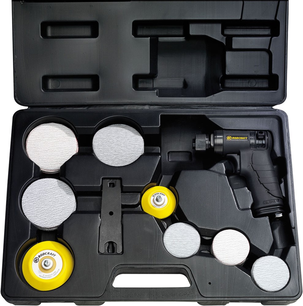 Contacteer onsDe RC 7682 K is een praktische reparatieset voor onder andere lichte lak schades. De machine beschikt over een ergonomische behuizing van composiet en een snelheidsregelaar met duimknop zodat hij met 1 hand kan worden bediend. De luchtuitlaat bevind zich onder de motorbehuizing. Verder is de machine uitgerust met een 75 mm steunschijf en heeft een uitslag van 5 mm. Bij deze set zijn onderstaande delen meegeleverd: 1 Velcro steunschijf 50 mm 1 Velcro steunschijf 75 mm 10 schuurschijven 50 mm korrel 600 10 schuurschijven 75 mm korrel 600 10 schuurschijven 50 mm korrel 320 10 schuurschijven 75 mm korrel 320 10 schuurschijven 50 mm korrel 180 10 schuurschijven 75 mm korrel 180 Bovenstaande alles tezamen met de machine ingepakt in een compacte gereedschapskoffer