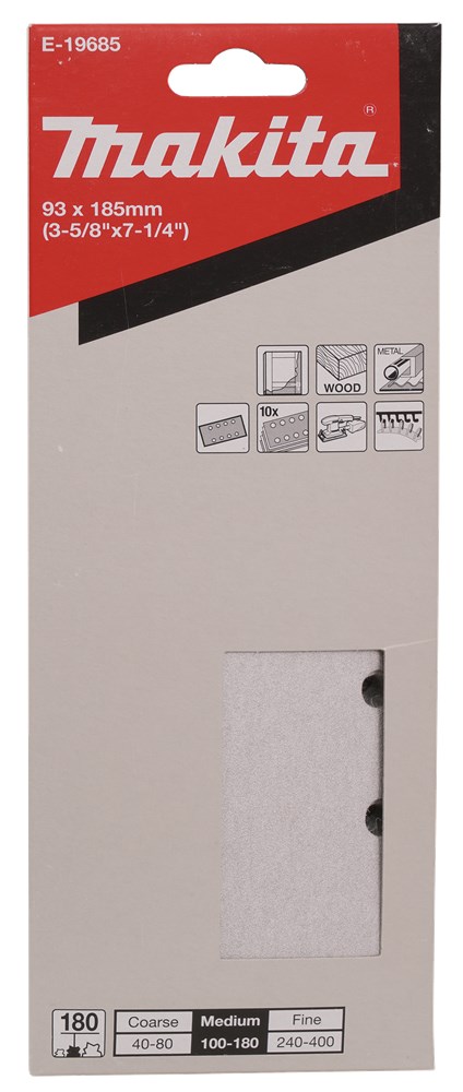 Contacteer onsMakita Artikelnummer: E-19685 SCHUURVEL 93X185MM K180 10ST VELCRO