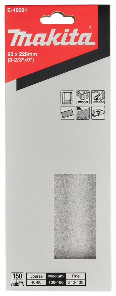 Contacteer onsMakita Artikelnummer: E-18091 SCHUURVEL 93X228MM K150 10ST