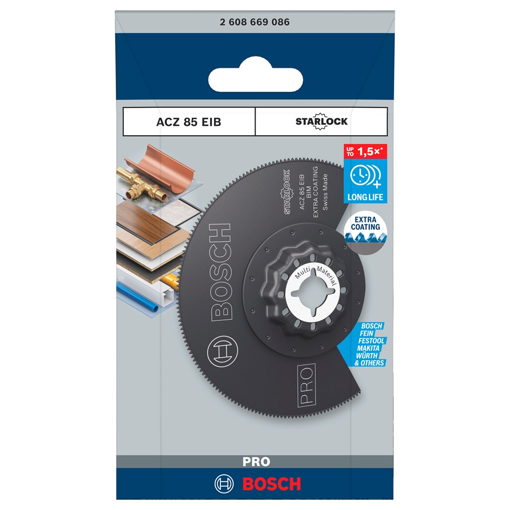 Het PRO ACZ 85 EIB segmentzaagblad is gemaakt van bi-metaal voor kracht en uithoudingsvermogen. Bovendien zijn de tanden gecoat voor extra duurzaamheid. Het zaagblad heeft een kleine tandgeometrie, waardoor probleemloos zagen in ongeharde metalen mogelijk is.