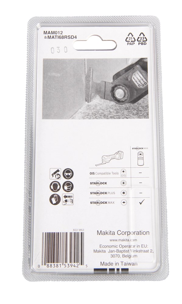 Multitoolbladen met Starlock Max-bevestiging. Ontworpen voor het verwijderen van specie en voor schurende klussen. De bruine accentkleur maakt het gemakkelijker om de bladen te onderscheiden van bladen die voor andere materialen zijn bedoeld. De ruime keuze aan accessoires voor multitools biedt bladen met diverse breedtes, vormen en voor diverse materialen. De juiste set accessoires maakt het gereedschap efficiënt en veilig om mee te werken. Diamant segmentzaagblad voor frezen