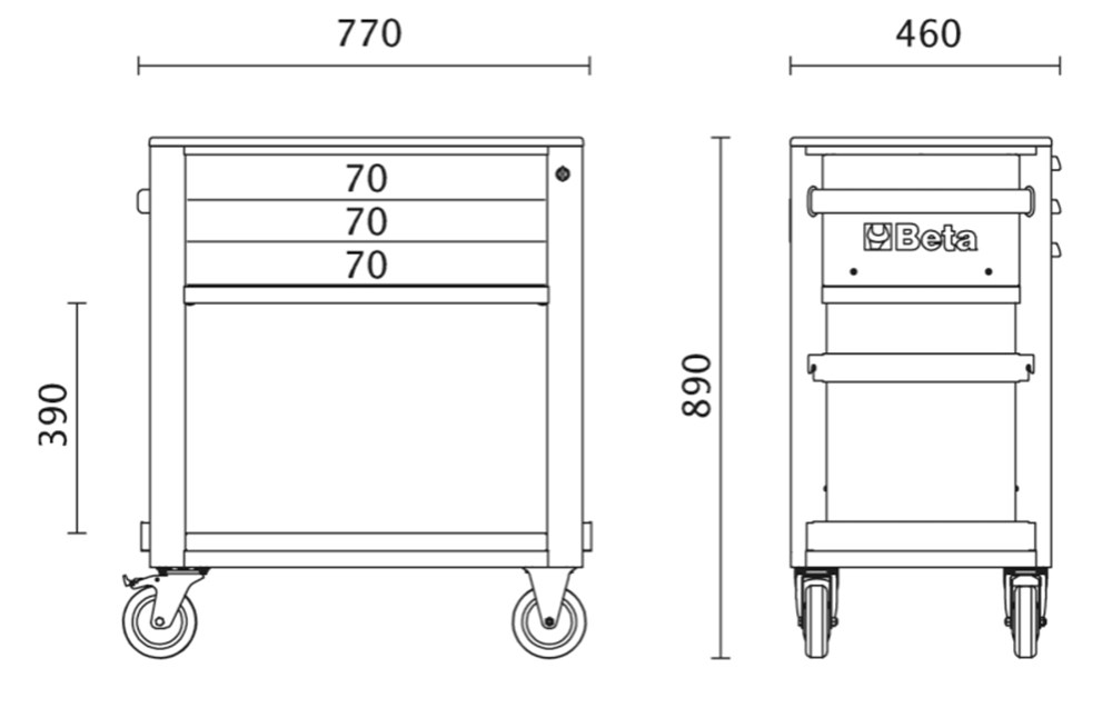 Contacteer onsBeta Artikelnummer: 050000301 C50S-O-SERVICE WAGEN MET 3 LADEN