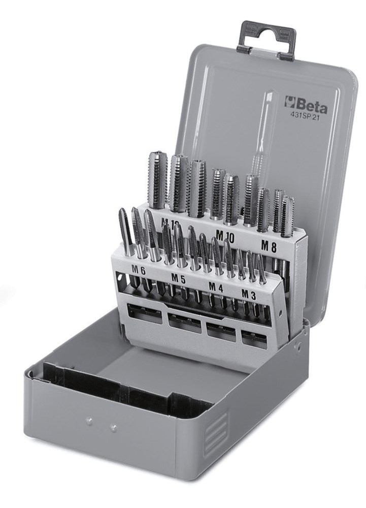 Contacteer onsSet handtappen, grove spoed, metrische draad HSS (art. 431) in kistje