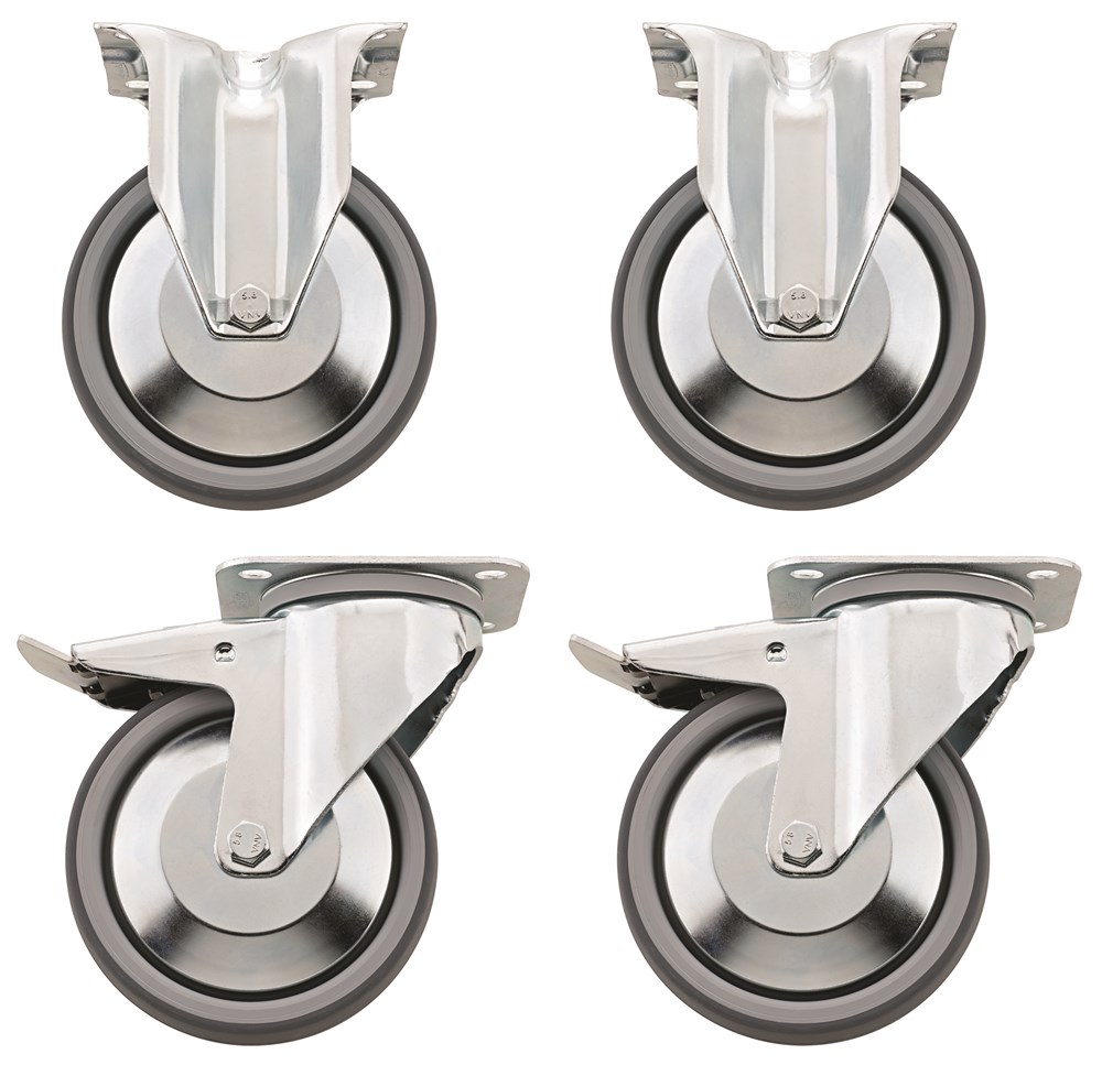 Contacteer onsBestaande uit: 2 vaste en 2 zwenkbare wielen, diameter 125 mm, waarvan 2 met vastzetrem, voor nr. 95, 95VA, 98VA en WB620.