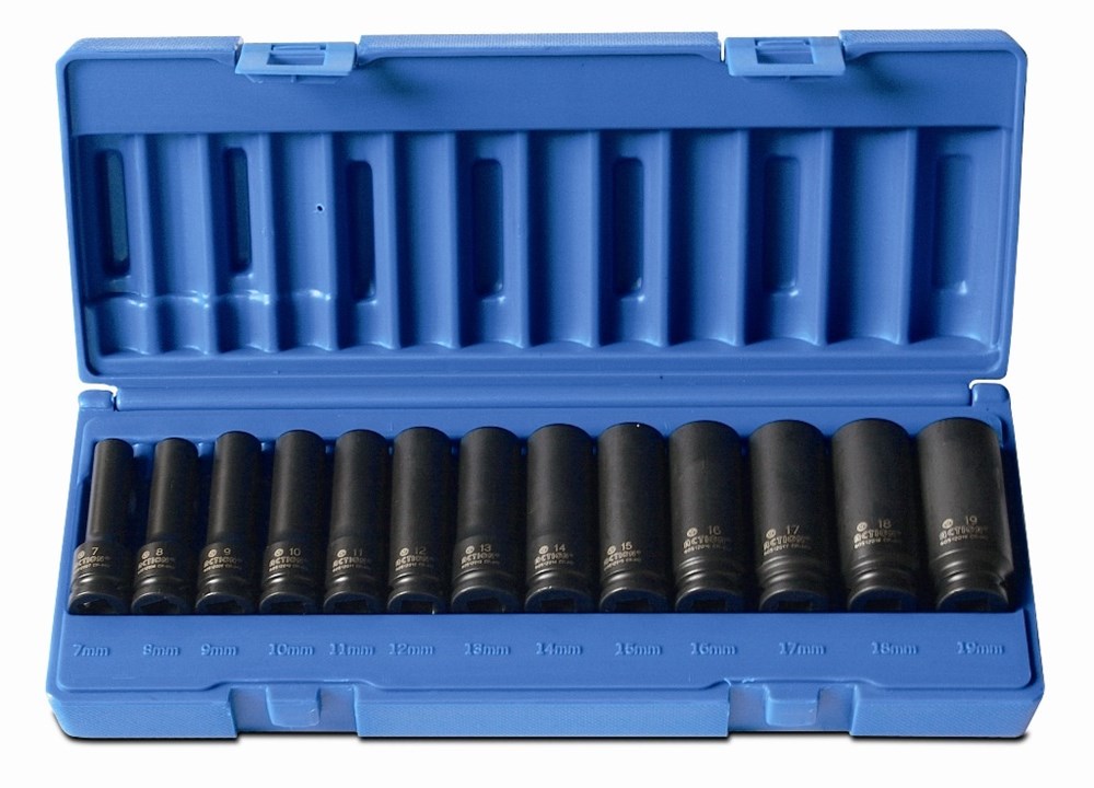 13 delige 3/8" Aandrijfvierkant, 6-Kant Diepe Slagdoppenset.