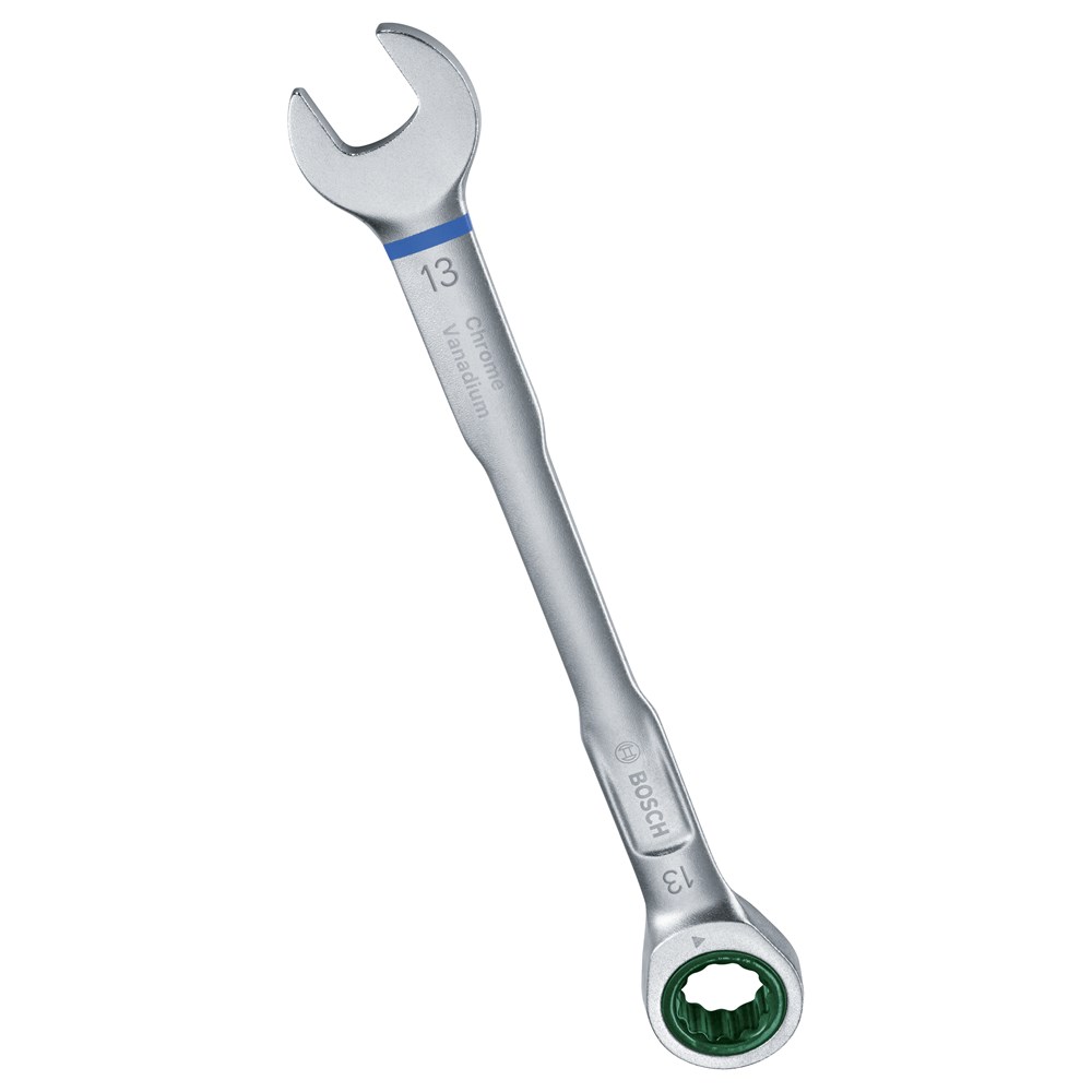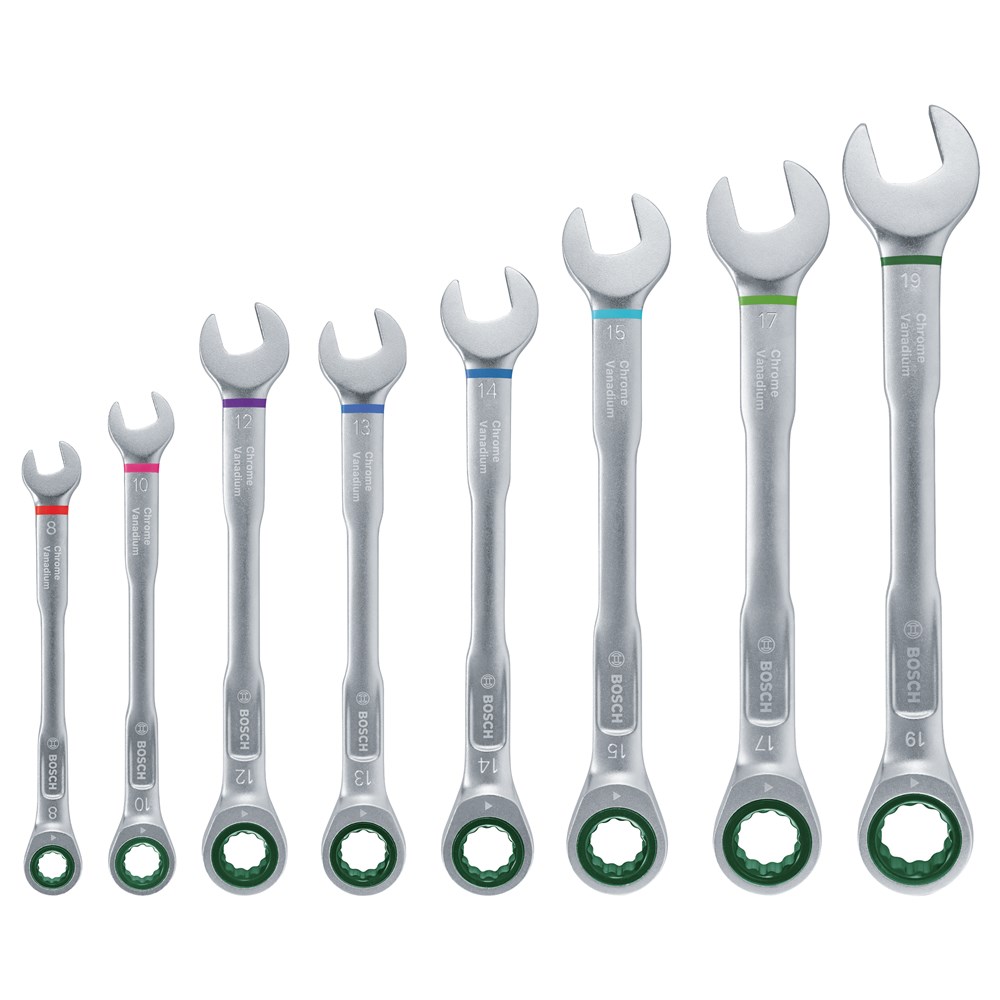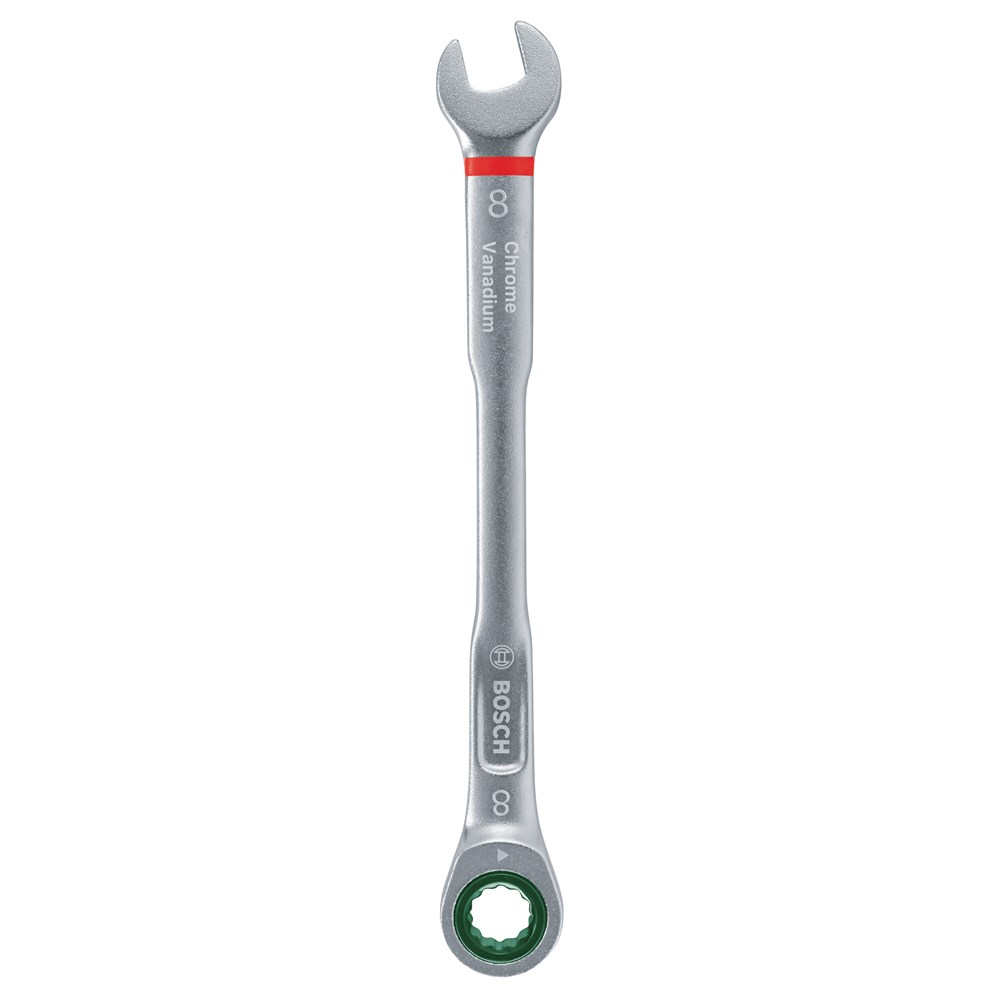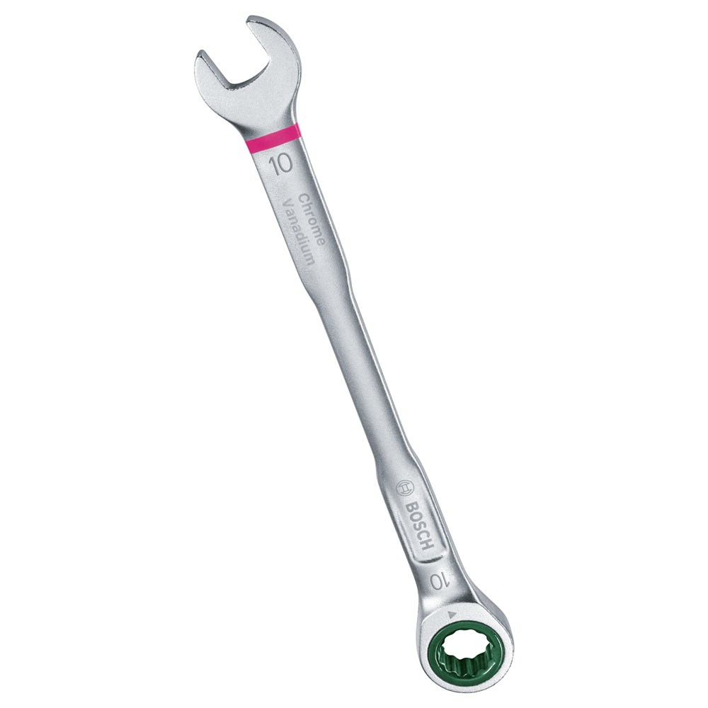 Allround doe-het-zelven met de hoogwaardige ratelsleutelset De 8-delige Bosch ratelsleutelset is de absoluut noodzakelijke allrounder voor diverse reparatie- en onderhoudsklussen bij het doe-het-zelven. Elk gereedschap is een fantastische combinatie van een steek- en ringratelsleutel voor allerlei klussen en voor het werken op krappe plekken. De gereedschappen zijn gemaakt van duurzaam, hoogwaardig chroomvanadiumstaal en hebben een gematteerde coating van nikkel voor een betere roestbestendigheid. Elke ratelsleutel heeft 72 tanden, een werkhoek van 5 graden en bereikt een draaimoment dat 20% boven de DIN-norm ligt. Voor ultiem gemak zijn de moersleutels voorzien van een kleurcodering voor snel kiezen en zijn verpakt in een compacte opbergkoffer met een uitvouwbare handgreep voor gemakkelijk dragen.