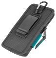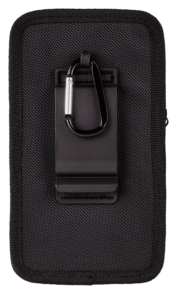 Contacteer onsGroot formaat smartphone houder, geschikt voor diverse Android-modellen en iPhones. De houder kan via een kliksysteem worden bevestigd aan een (gereedschaps)riem, en kan daardoor niet zomaar van de riem af schuiven. Tevens is de houder voorzien van een karabijnhaak voor bevestiging of sleutels. Zowel in de houder als aan de buitenkant zit een klein vakje voor bijvoorbeeld ID of bankpas, en aan de buitenkant is tevens plaats voor 2 pennen. Gemaakt van weersbestendig drie laags composiet materiaal. Geschikt voor toestellen tot en met 7,0 inch beeldschermafmeting.