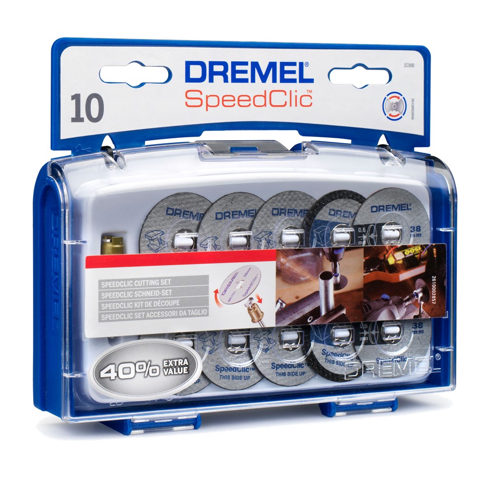 Assortiment met 10 EZ SpeedClic snijschijven en de speciale EZ SpeedClic opspandoorn. Behalve 6 gewone 38 mm snijschijven voor metaal bevat de set 2 speciale dunne snijschijven en 2 unieke snijschijven voor kunststof. EZ SpeedClic is het unieke snelwisselsysteem voor accessoires voor rotatiegereedschappen. EZ SpeedClic. Snel, eenvoudig, zonder sleutel.