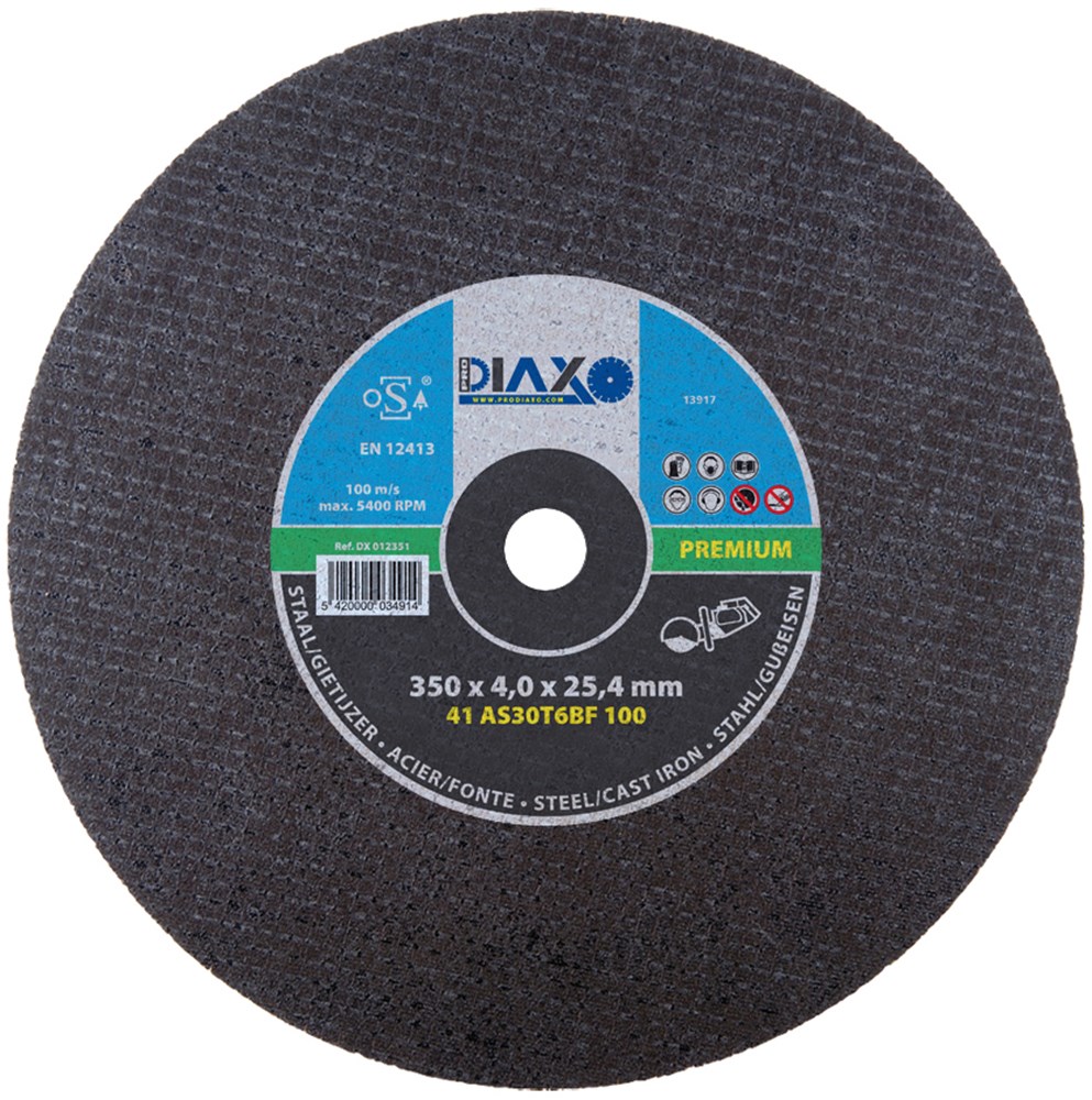 Contacteer onsPRODIAXO Artikelnummer: PPDX 012351 SNIJSCHIJF STAAL - 350 X 4.0 X 25.4 MM (MOTORZAGEN) / PREMIUM *