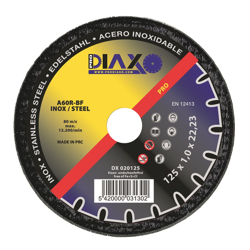 Contacteer onsPRODIAXO Artikelnummer: PPDX 020125 SNIJSCHIJF INOX 125 X 1.0 MM A60R-BF / PRO CONSTRUCTION