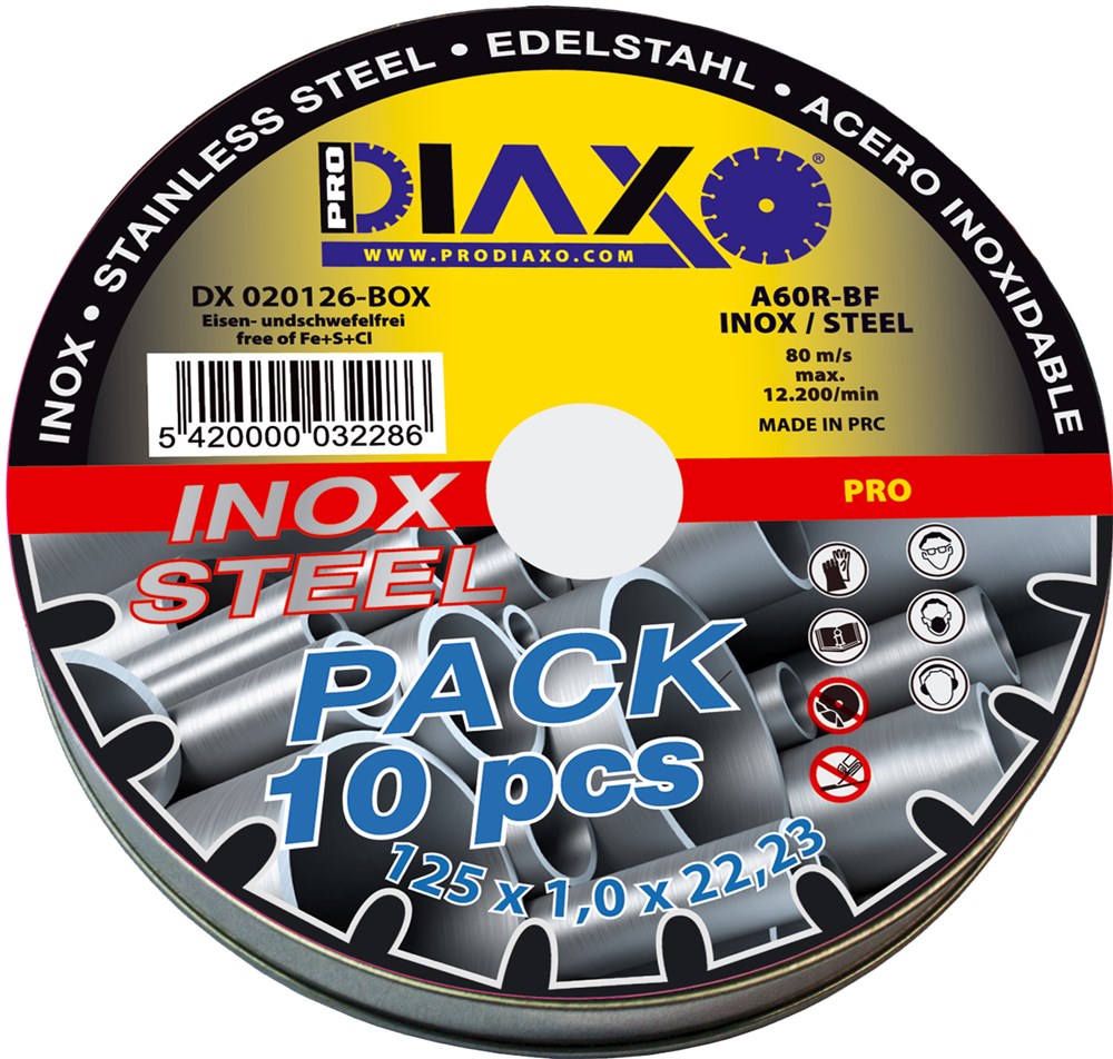 Contacteer onsPRODIAXO Artikelnummer: PPDX 020126-BOX SNIJSCHIJF INOX 125 X 1.0 MM A60R-BF / PRO CONSTRUCTION - BOX 10 STU