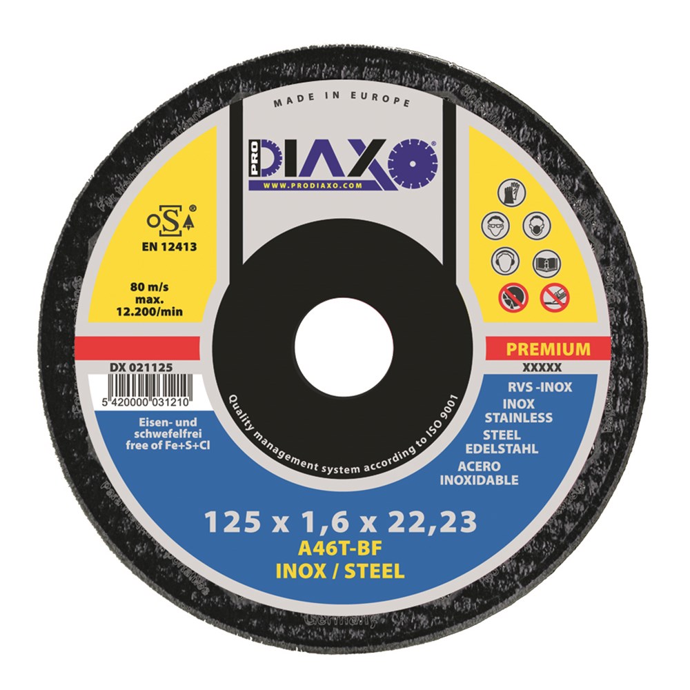 Contacteer onsPRODIAXO Artikelnummer: PPDX 021125 SNIJSCHIJF INOX 125 X 1.6 MM A46T-BF / PREMIUM CONSTRUCTION