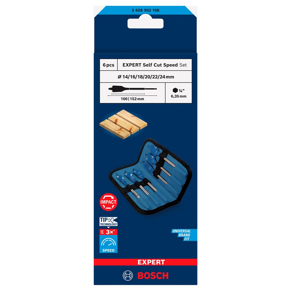 De EXPERT Self Cut Speed is voorzien van de meest geavanceerde ontwerpen voor speedboren, waardoor de boor gemakkelijk te gebruiken en zeer praktisch is voor professionals die zware klussen moeten doen. De Bosch schroefpunt brengt de speedboor met zelfs de lichtste druk in het hout. Dit is vooral handig als je ondersteboven of in krappe nissen moet boren. Het geavanceerde schepontwerp zorgt voor extra snelheid.