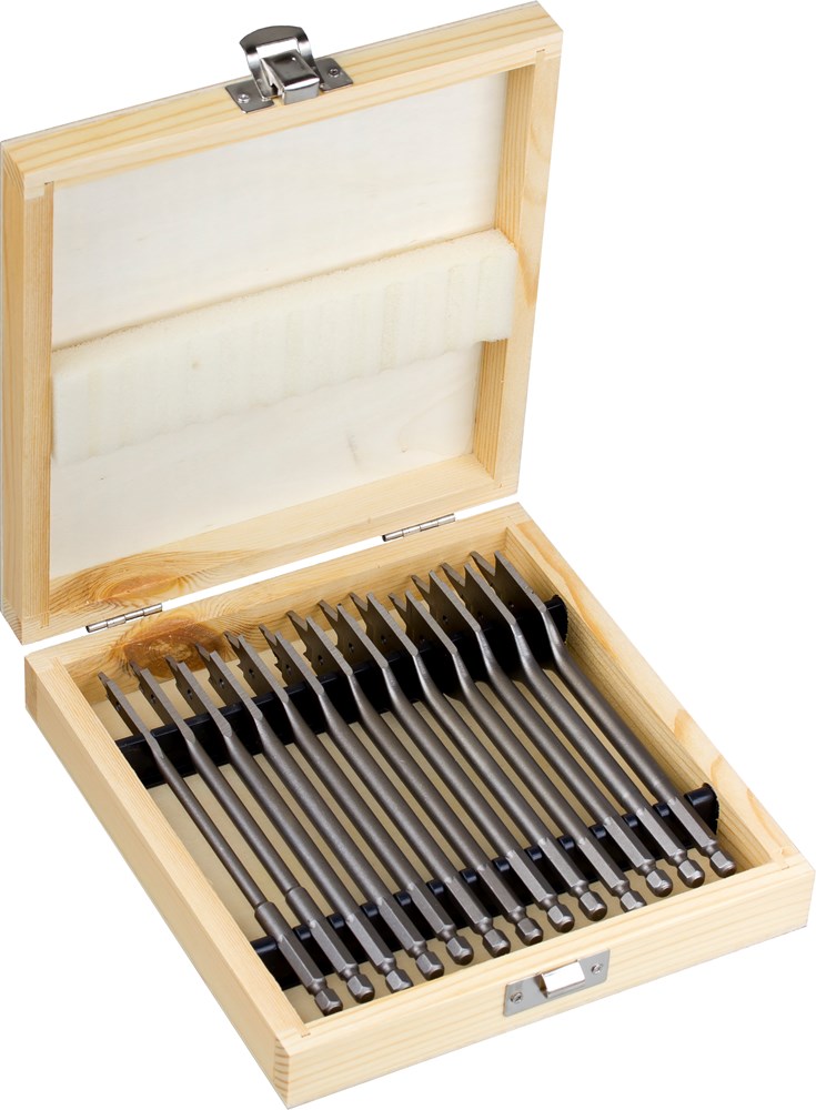 Contacteer onsGeharde vlakfreesboor uit CrV-staal met lange centreerpunt, spaanbreker en zijsnijders. Voor zacht- en hardhout, spaanplaat