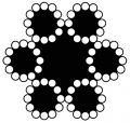 DX Staalkabel 6x12 + 7 TWK, verzinkt bestaat uit 6 verzonken strengen van 12 staaldraden en 1 touwkern . De 6 strengen zijn kruisslag rechts om 1 touwkern geslagen, wat het totaal aantal toegepaste touwkernen op 7 brengt. De kabel is zeer soepel met veel rek en wordt geleverd op haspels van 50 en 100 meter.