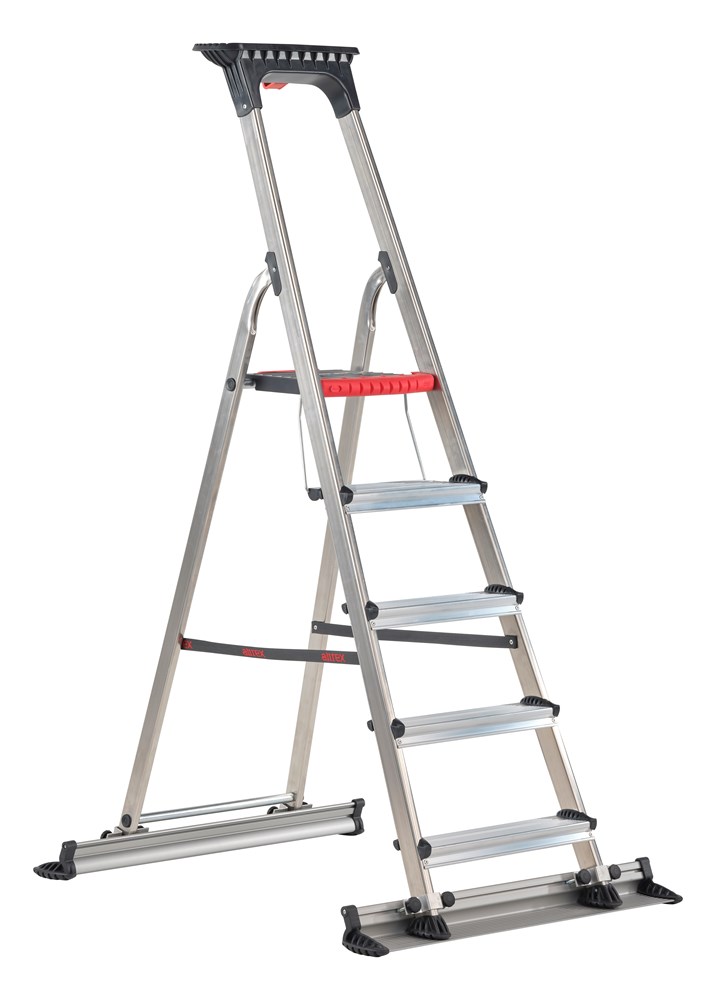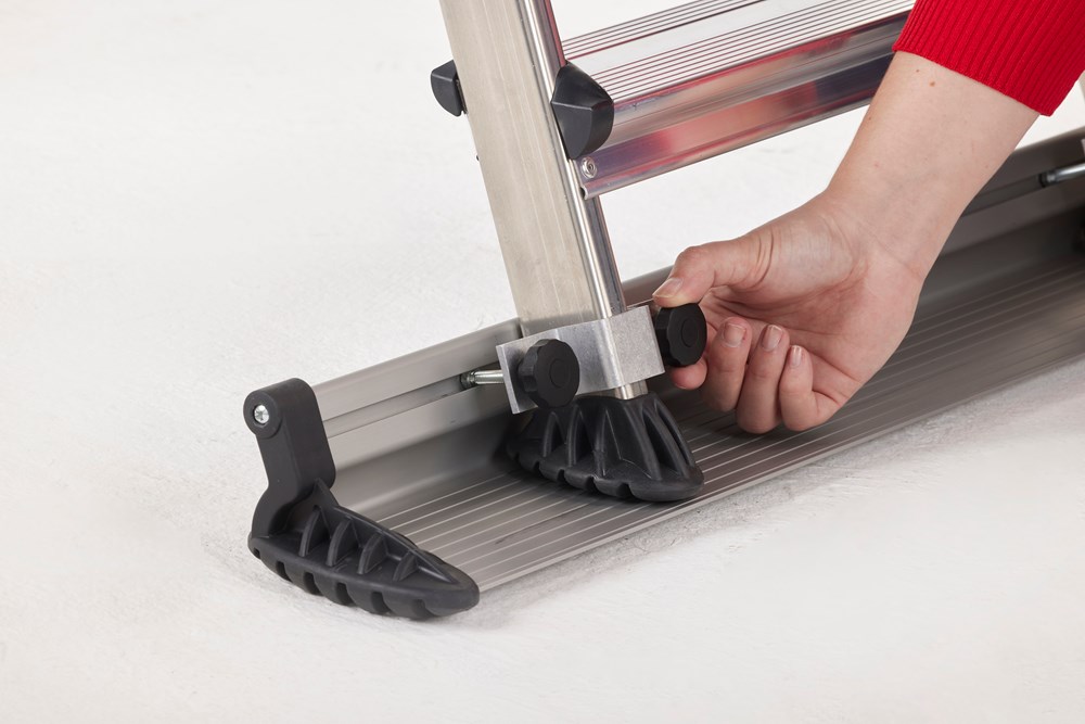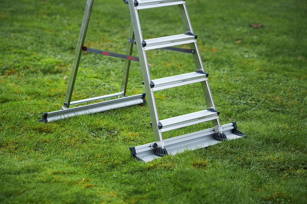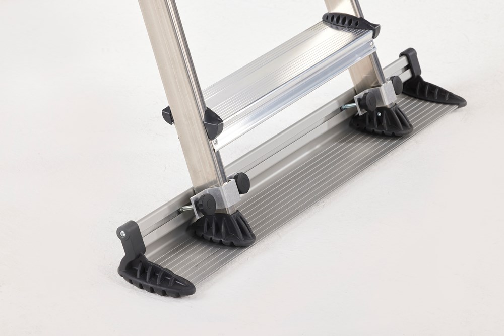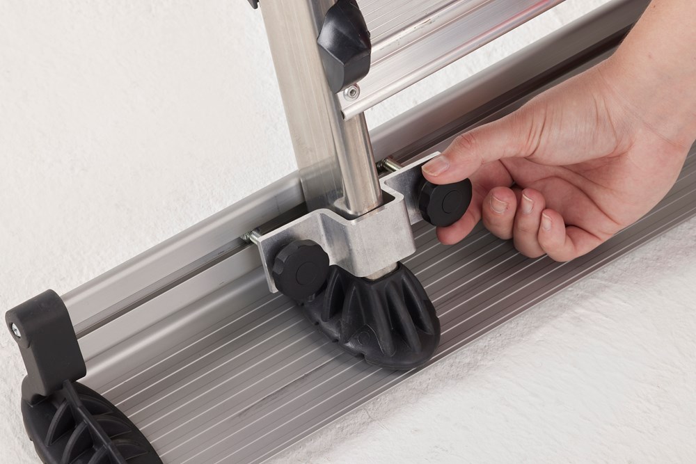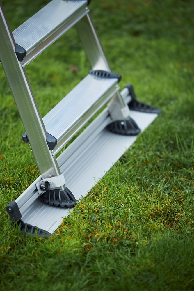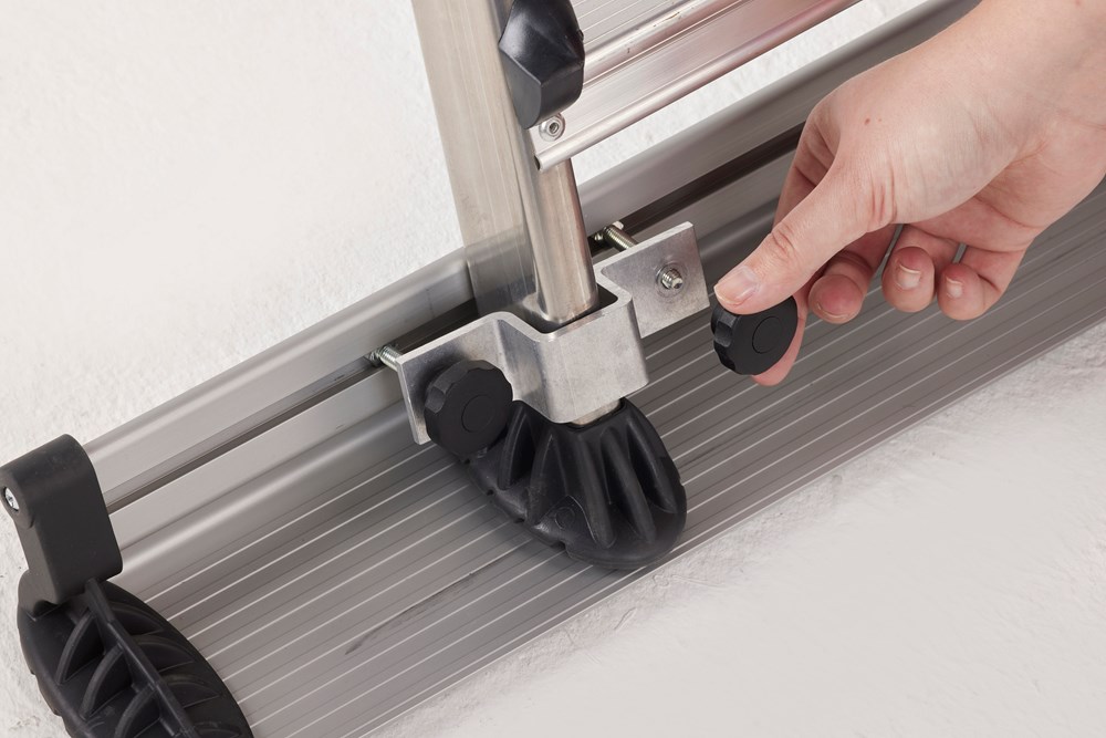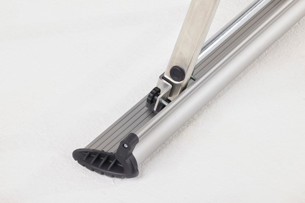 De ca. 90 centimeter brede Gardenbase bevestig je gemakkelijk aan de onderzijde van jouw huishoudtrap door de meegeleverde U-beugel en draaiknoppen. Zo staan de voeten van de trap altijd op een vlakke en stevige ondergrond. Door de geanodiseerde afwerking (een harde en slijtvaste laag) blijft het materiaal van jouw Gardenbase ook nog eens langer mooi.