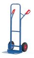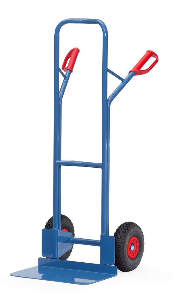 Contacteer onsHandzame steekwagen met schep van stalen plaat, stabiel gelaste constructie, gepoedercoat, blauw, RAL 5007. Veiligheidshandvatten. Stalen schep aanschroefbaar en daardoor omwisselbaar. Wielen van polyurethaan lekbestendig op kunststof velg, naaf met rollager. Beugel boven en dwarsverbinding gebogen. Voor het veilig transporteren van ronde goederen zoals rollen, kannen, emmers, enz. Ongemonteerde aanlevering.