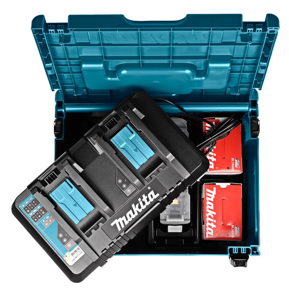 Contacteer onsStartset met 4 maal accu BL1850B (18 volt, 5,0Ah) en duo snellader DC18RD. Geleverd in Mbox nr.3. De kofferinzet/inlay voor de set is artikelnummer 839205-3. Passend op Makita Model: DJR183PT4J , DLM380Z , DLM431Z , DUB182PT4J , DUB183PT4J , DUB184PT4J , DUB184TJX1 , DUB361PT2 , DUB361Z , DUB362PG2J , DUB362PG4J , DUB362PT2J , DUB362PT4J , DUB362Z , DUC252Z , DUC254PT4J , DUC353PG2J , DUC353PG4J , DUC353PT2 , DUC353PT2J , DUC353PT4J , DUC353Z , DUC355PT4J , DUC400PT4J , DUC405PT4J , DUH551Z , DUH651Z , DUP361Z , DUR365UPT2 , DUR365UZ , DUR366LZ , DUX60PTJX8 , DUX60Z , DUX60ZM4 , DUX60ZX10 , DUX60ZX11 , DUX60ZX12 , DUX60ZX13 , DUX60ZX14 , DUX60ZX15 , DUX60ZX16 , DUX60ZX9 , LM001CT4X4 , UB001CT4X1