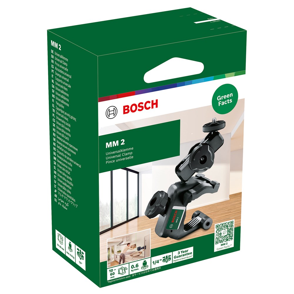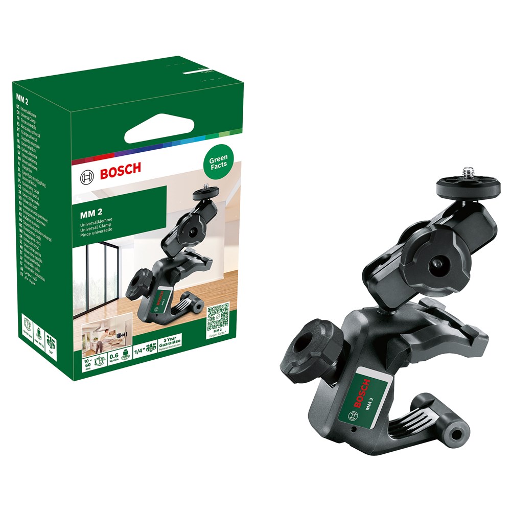 Met de MM 2 klem kunnen bouwlasers snel en eenvoudig worden vastgeklemd. De MM 2 heeft een beweegbare arm, die gekanteld en 360° gedraaid kan worden.
