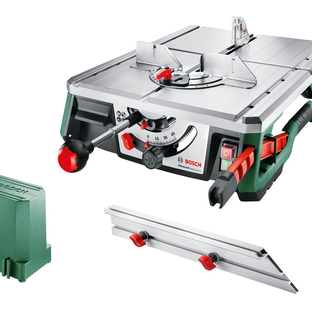 Licht en compact met NanoBlade-technologie voor veelzijdigheid bij een groot aantal klussen Licht en compact – de tafelzaag AdvancedTableCut 52 zorgt voor veelzijdig zagen in hout. Met een gewicht van slechts 8,5 kg is dit gereedschap gemakkelijk te transporteren en bespaart ruimte bij het opbergen. Trek het NanoBlade eenvoudig door het werkstuk voor snel afkorten of duw dit erdoor voor schulpen (zagen in lengterichting). Deze tafelzaag maakt verticale verstekhoeken tot 45° of horizontale verstekhoeken van +/- 60°. Het NanoBlade is onderhoudsvrij en hoeft niet te worden gesmeerd, geslepen of gespannen. De SDS-compatibiliteit van het zaagblad maakt snel en gemakkelijk wisselen van het zaagblad mogelijk. Een geïntegreerde lade houdt zaagbladen en andere accessoires bij de hand.