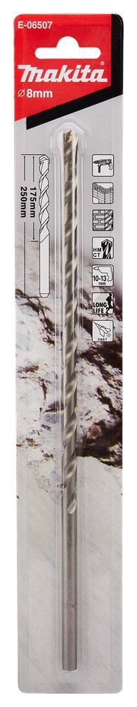 Contacteer onsMakita Artikelnummer: E-06507 TCT BOOR MET RECHTE SCHACHT 8 X 250 MM
