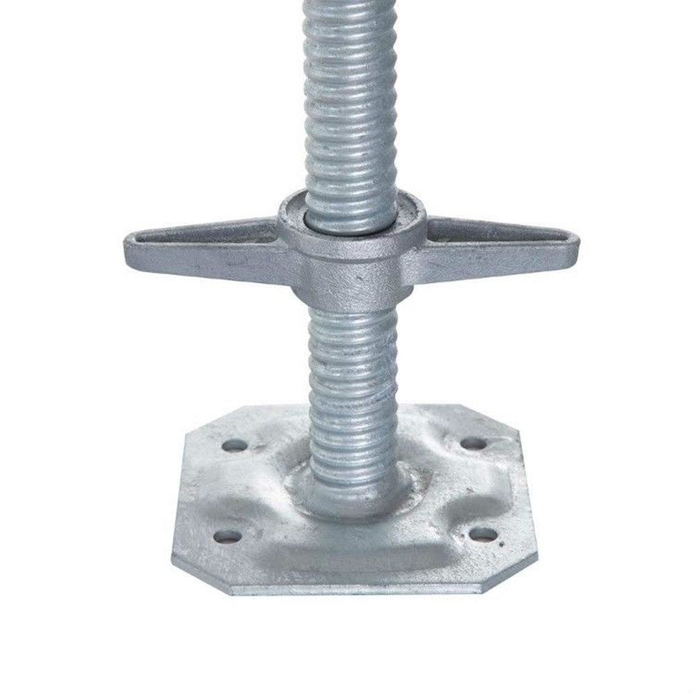 Contacteer onsGegalvaniseerde spindel met nylon passtukken geschikt voor steigerbuis Ø 50,0 mm. Dankzij deze passtukken zal de spindel zich geheel opsluiten in de steigerbuis. De spindel kan nog extra worden geborgd door middel van een vergrendelbout. 30 cm in hoogte instelbaar. De voetplaat is voorzien van 4 gaten, hierdoor kan deze worden vastgezet aan de ondergrond.