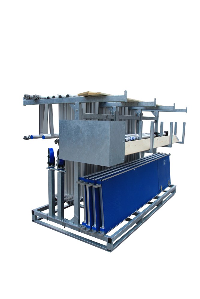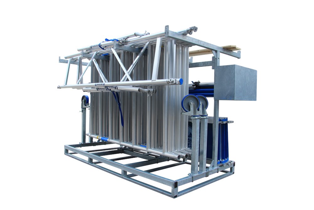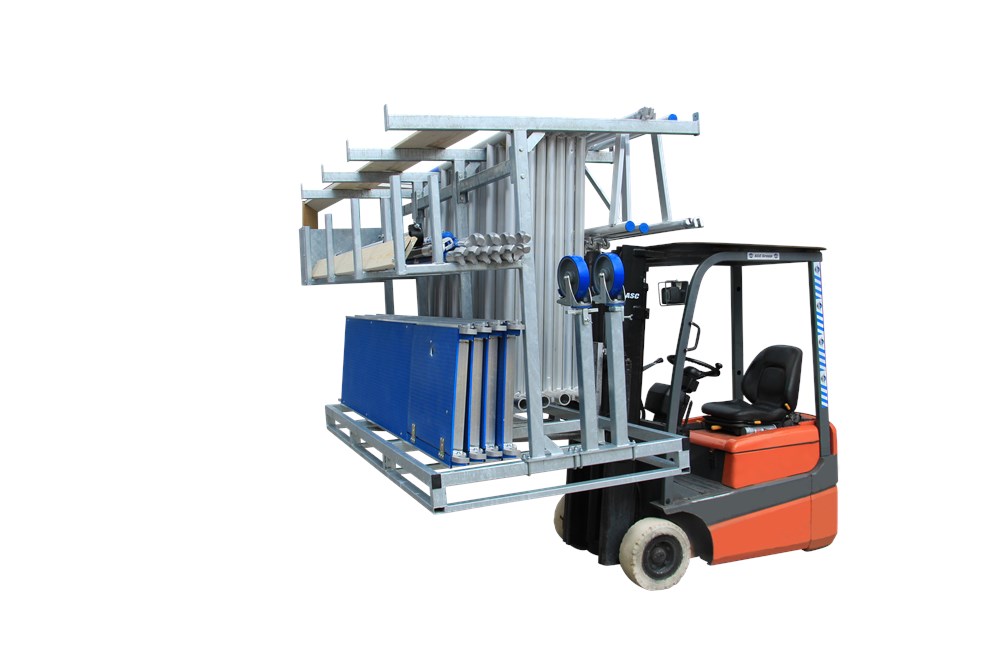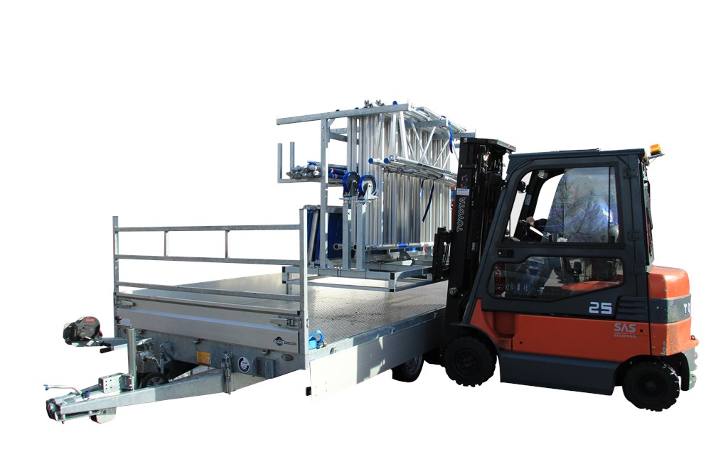 Door de toegepaste techniek is het frame zowel in de breedte als in de lengte op te pakken door een heftruck en te laden in de meest standaard aanhangers.