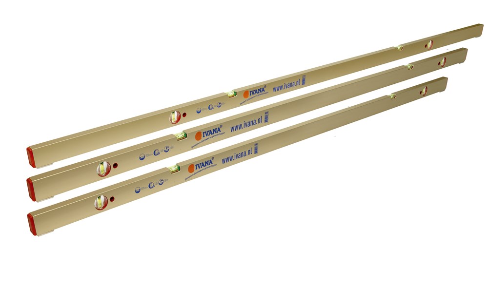 Contacteer onsWaterpas van stevig geanodiseerd aluminium uitgevoerd met twee stelvoeten en schokbestendige libellen